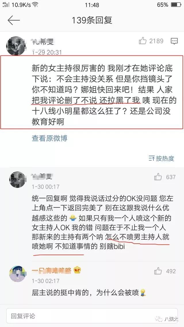 有网友还吐槽说在她微博下diss她挡镜头了,就被她删评论拉黑了↓↓↓