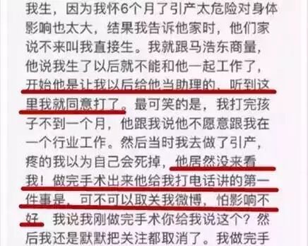 但后来也是着实被前女友“坑”了。刘胭爆料他私下疑似酗酒、沉迷游戏、欠钱不还……之后爆料的事情更是让人惊讶不已,更加不敢相信。马浩东私下会骂喜欢自己的粉丝“脑残”,为了让女友在出国之后不变心更是让其怀了孕,怀孕六个月之后,怕此事影响了自己的事业就带着女友去引产。
