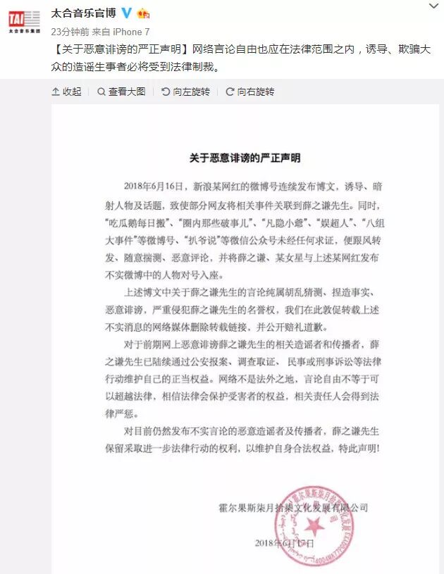 而就在今天下午,明里暗里被影射的薛之谦终于通过经纪公司和工作室回应了此事,表示“纯属造谣和诽谤”,算是正面刚了