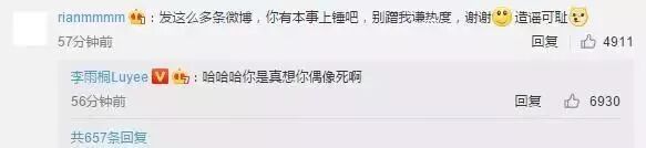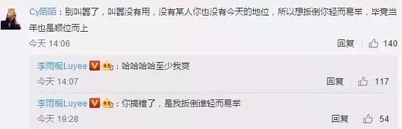 从粉丝评论看,此次矛头指向薛之谦,而且当粉丝评论说不要蹭谦热度的评论,李雨桐的回复是:“哈哈哈你是真想你偶像死啊”。Emmmm意思有些不言而喻啊