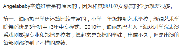 十几岁就出来当模特了,虽在跑男团学历低。但是找了黄晓明,对她宠爱有加。大家应该都知道baby在她14岁的时候就步入娱乐圈了,在步入娱乐圈之后她就没有继续读书了。所以baby的学历不是特别高,不过baby也告诉了大家一件事情,那就是能力比学历重要。