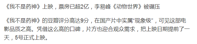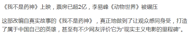 《我不是药神》上映,票房已超2亿,李易峰《动物世界》被碾压