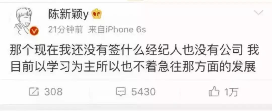 在最红的时候,陈新颖跟粉丝保证:现在的重心还是放在学习上,也不会搞网红那一套↓