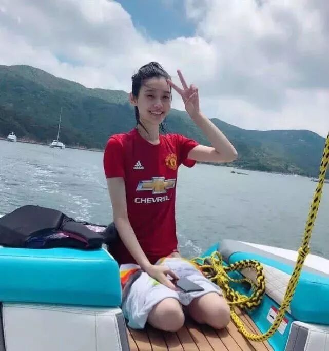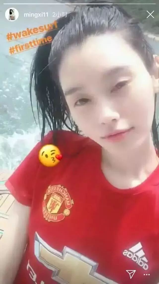 逗留香港期间,奚梦瑶在社交网发布“即时动态”,她身穿红色球衣,出海冲浪