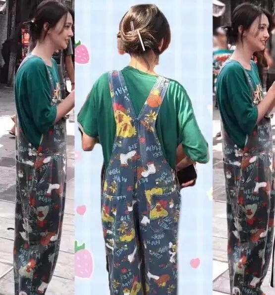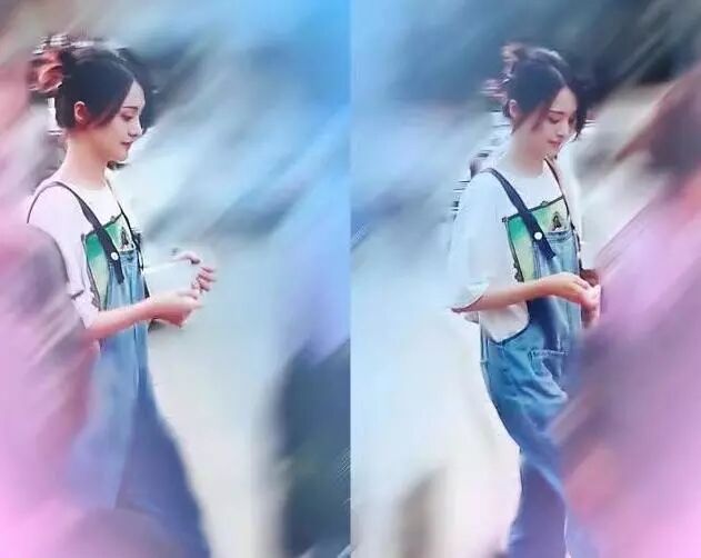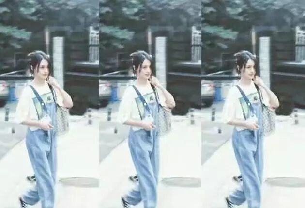 而是一条蓝色的牛仔背带裤,同时,上身的T恤也换了一套,据称今天郑爽是换了好几套衣服