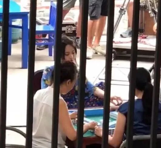 从照片中可以看出郑爽穿着一花式T恤,最关键的是郑爽还把腿直接放在了椅子上,这坐姿看着就非常舒服啊,堪比《功夫》中的包租婆。原来是剧情需要,郑爽就要开始拍摄“打麻将”的戏份了