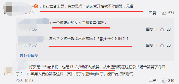 看到此情此景,网友们看不下去忍不住开始吐槽了:“都是成年人了,还在台上哭哭啼啼的,这是矫情玻璃心还是故意装惨卖可怜?”