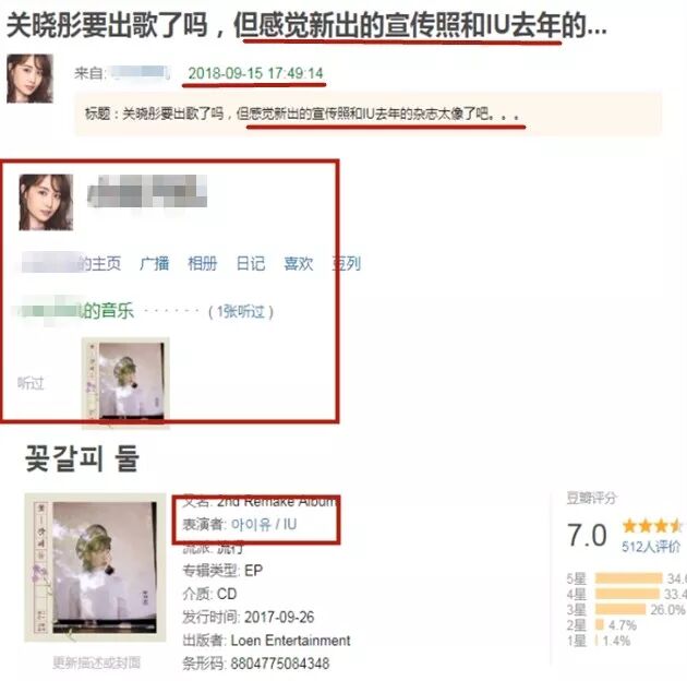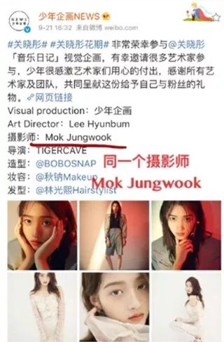 这里要说明一下,全网最先发现关晓彤的这组宣传照,跟IU相似的网友,的确是IU粉丝不假。