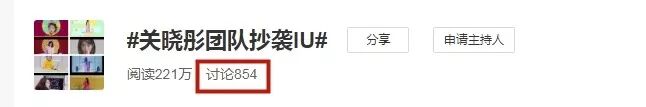 双方开始了互撕battle,并在下午1点左右,终于出现了“关晓彤团队抄袭IU”的话题。