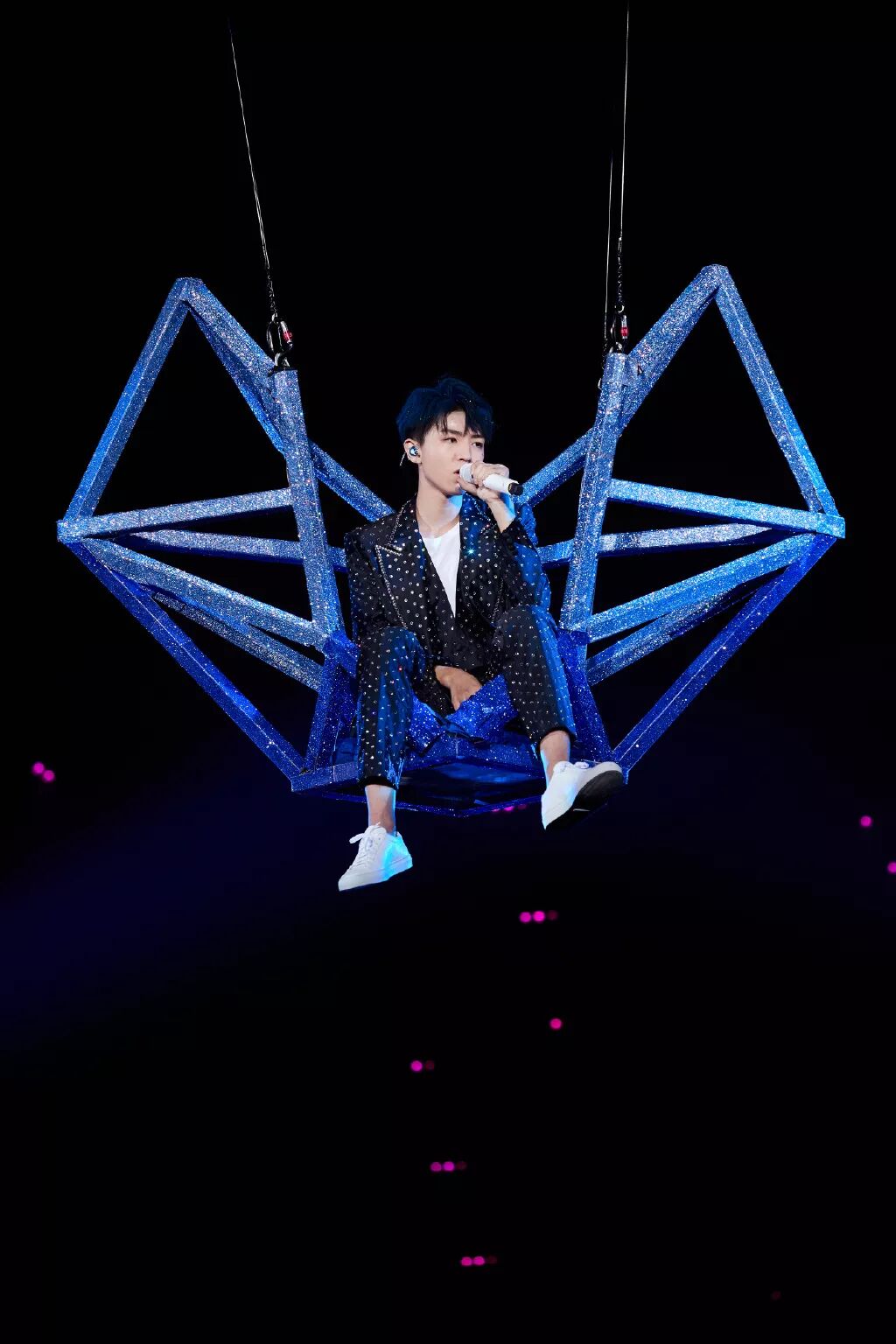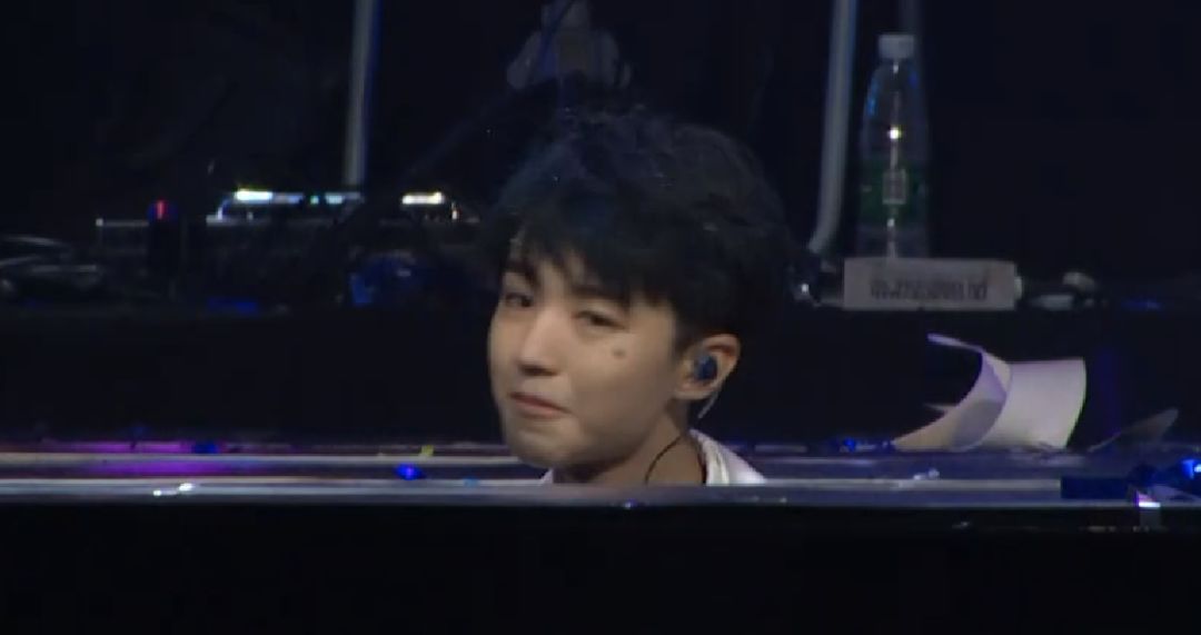 歌曲进入尾声,王俊凯也要离场了,王俊凯是站在升降台上离场的,随着升降台缓缓下降,王俊凯也慢慢在粉丝的视线里越来越少。而当时看直播的很多粉丝可能没发现,王俊凯在生日会落幕时哭了!他以为镜头拍不到,就没控制住情绪!有细心的粉丝发现,王俊凯在下降过程中,一开始是一边微笑,一边挥手告别,本来是很喜庆的舞台,可是当他只剩一个头部在外面的时候,他突然抖肩的小动作暴露了他的情绪,他不仅抖肩,还把嘴巴憋了一下,他哭了,他以为镜头已经没拍他了,就没控制住情绪,但其实他还在镜头中。