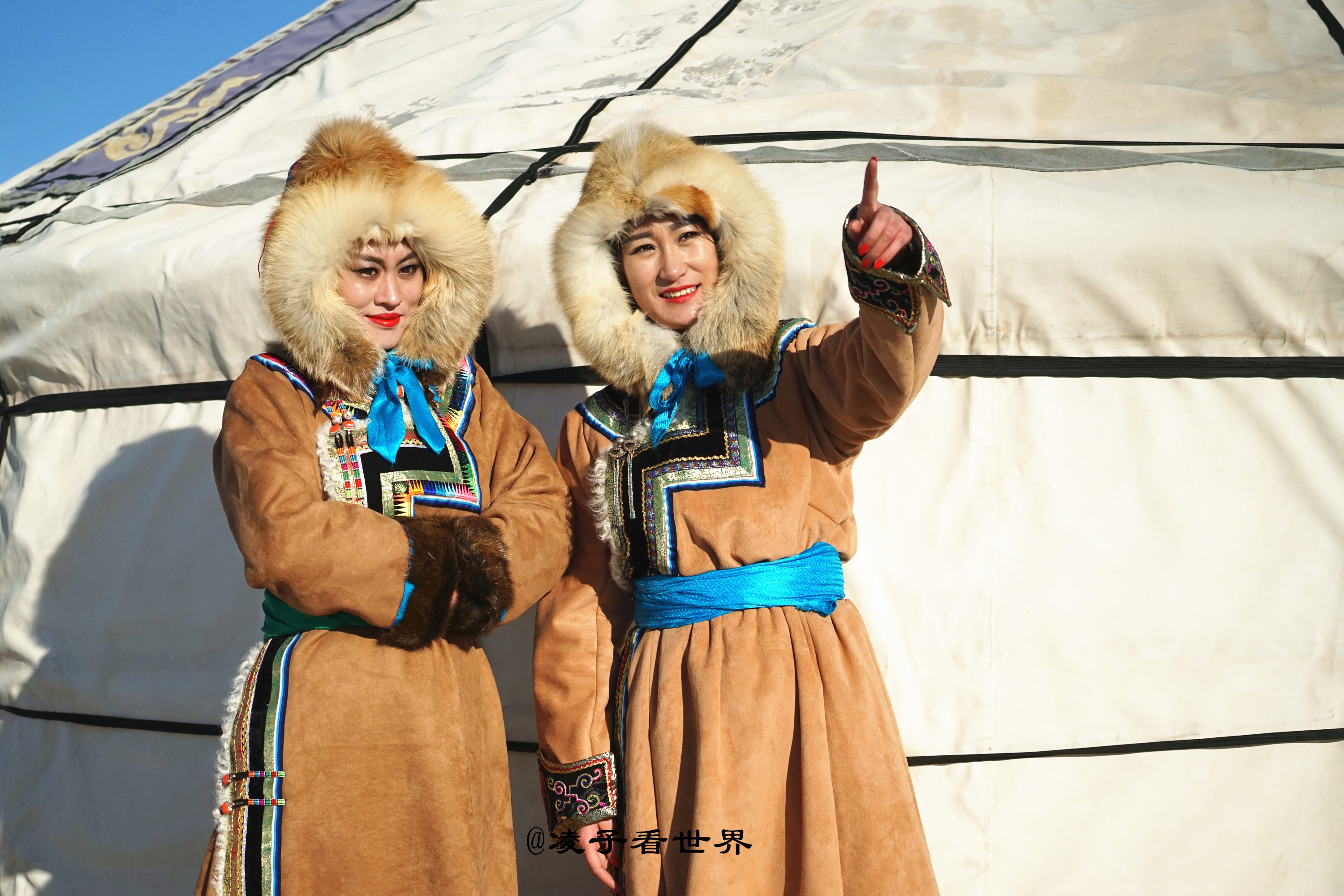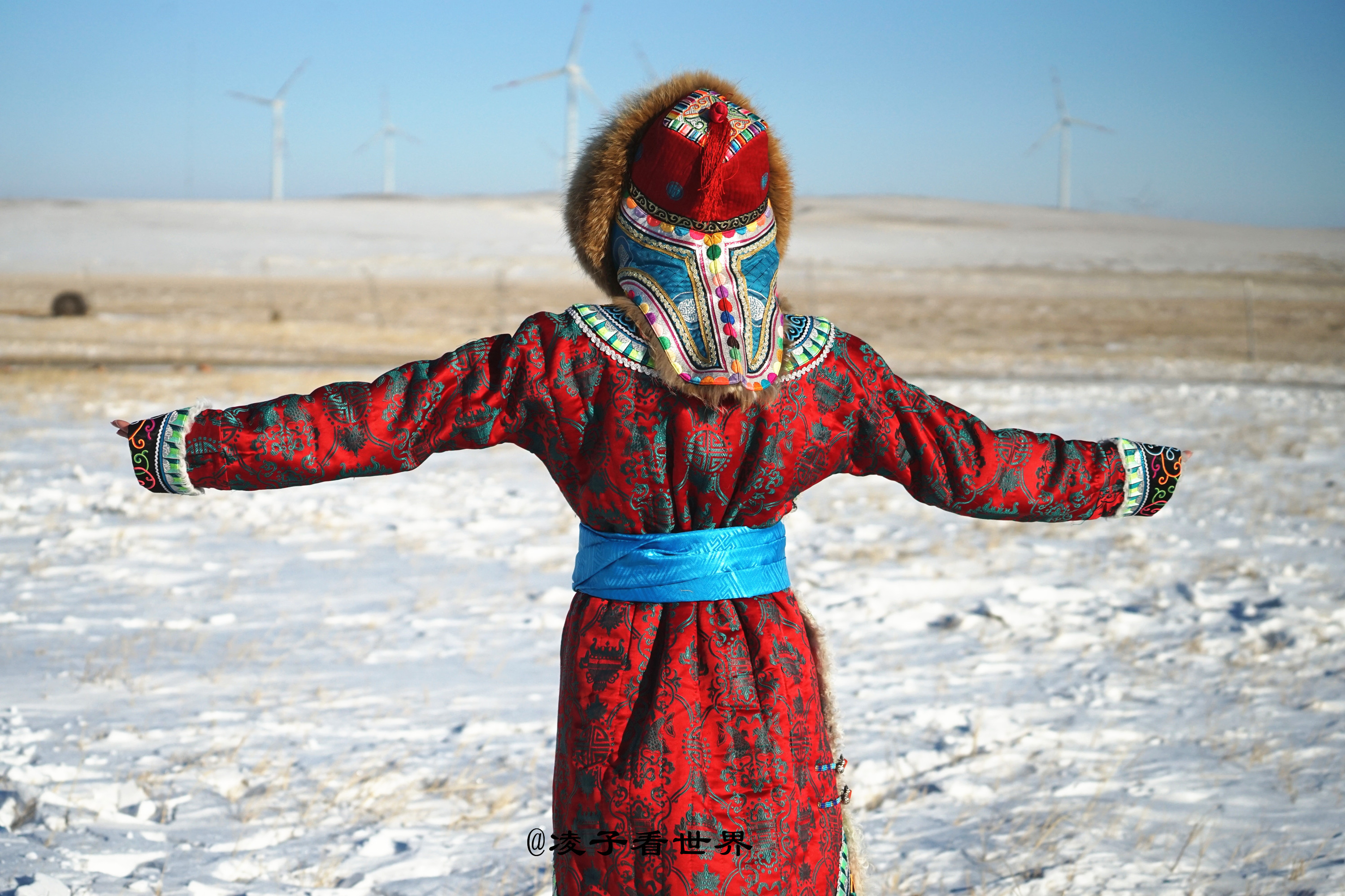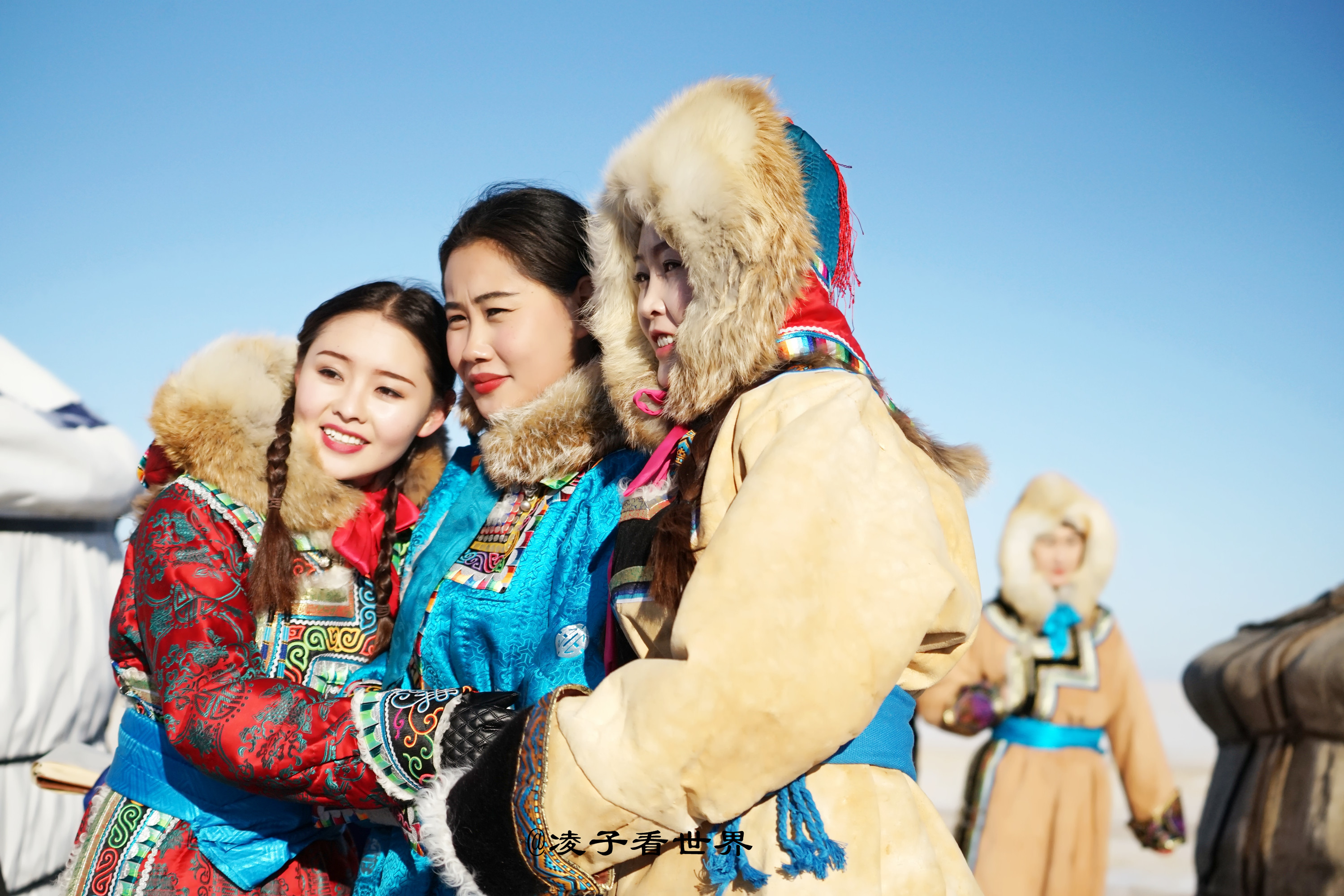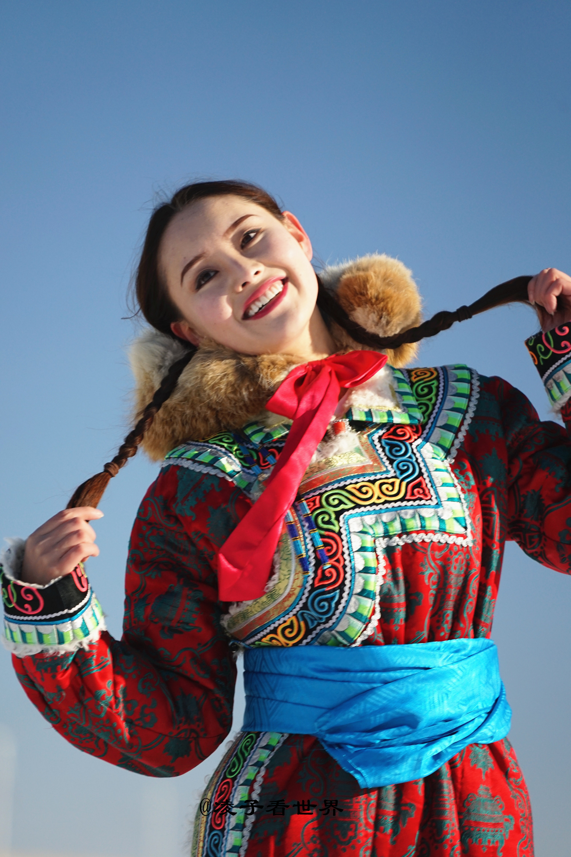 看着蒙古族姑娘们身着艳丽的民族长棉袍或者皮袍,脚穿具有特色的皮靴。内蒙女子不但长得漂亮而且身材高挑,尤其头戴毛绒绒的皮帽子,更是楚楚动人。皮毛一体的帽子刺绣着很漂亮图案,极易吸引眼球。看的一些来自南方的朋友不停的要和她们合影留念,我当然也不例外,也被她们靓丽的服饰以及漂亮的面孔所吸引。不停的按动快门为她们留下这动人的瞬间。