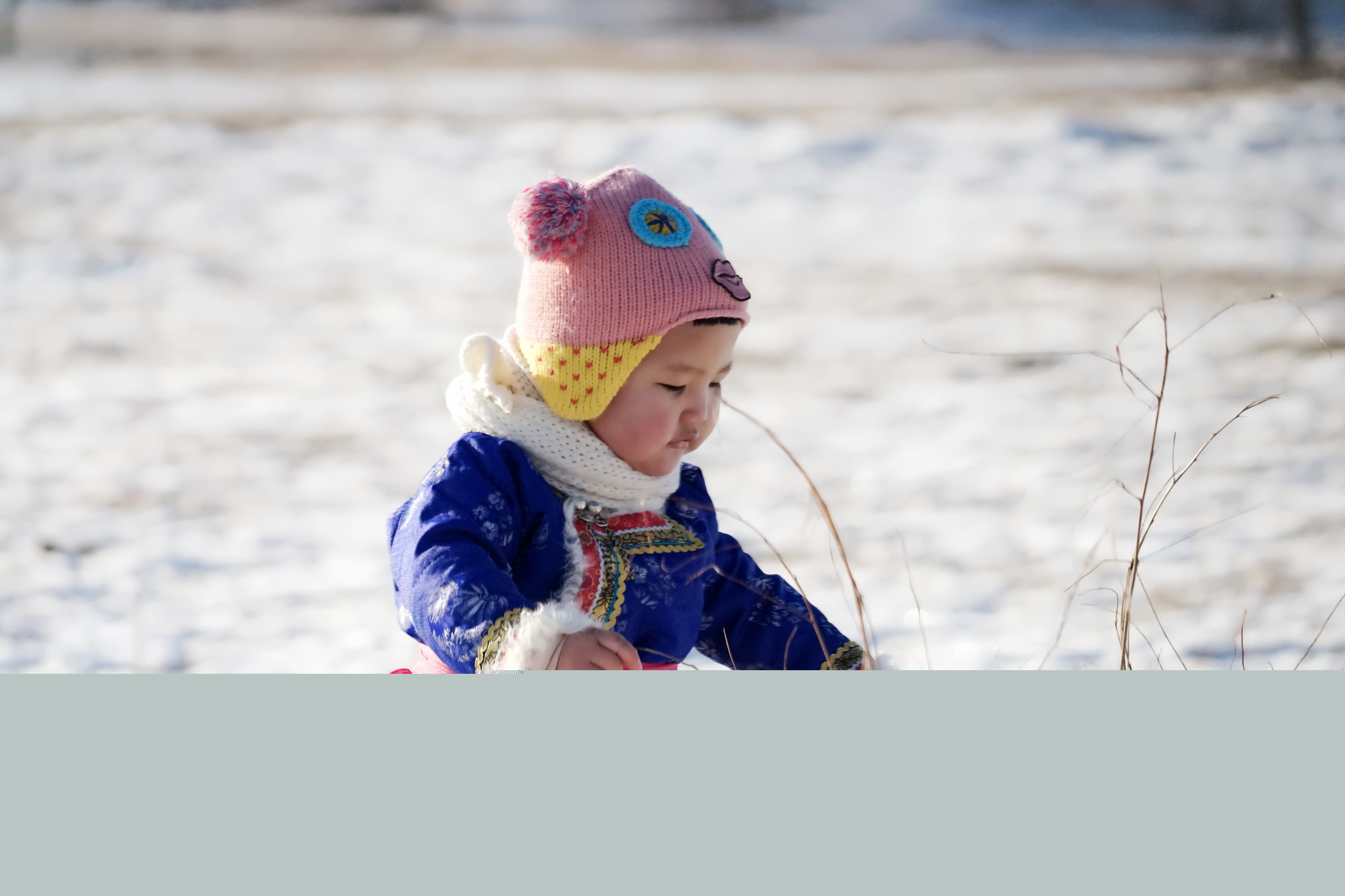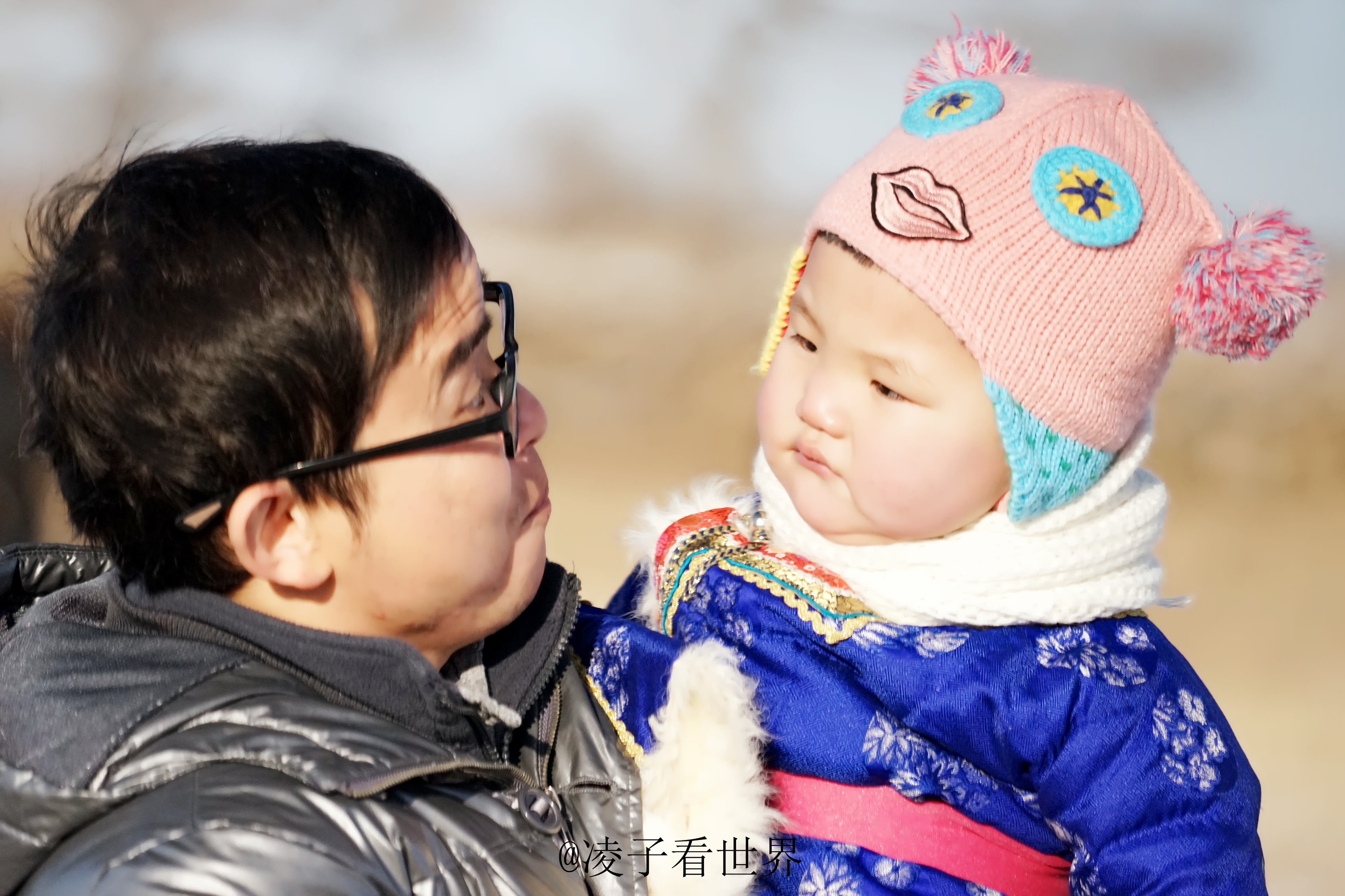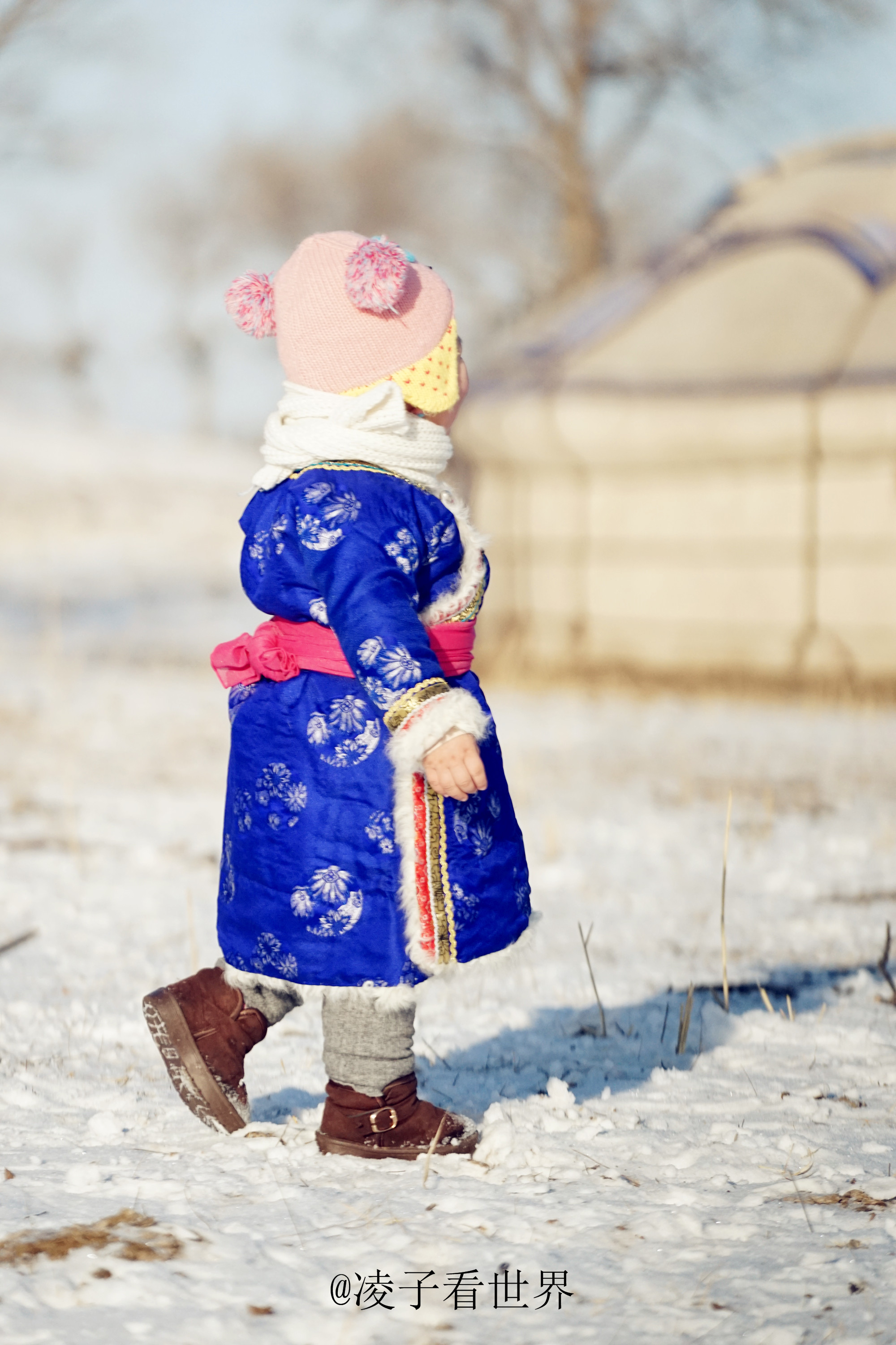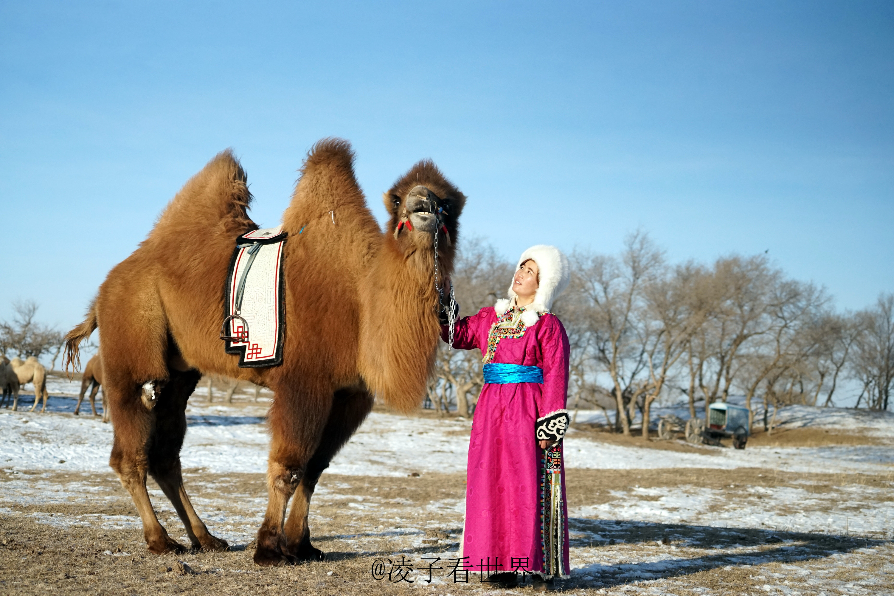 锡林郭勒零下十几度还是可以接受的,看远处姗姗而来的娃娃,从小就不怕冷,一大早就出来陪爸爸妈妈一起牧羊。小脸冻得通红,一点也没有影响她在雪地撒欢的乐趣,一会揪棵草,一会又去骑骆驼,反正是一点都不闲着。
