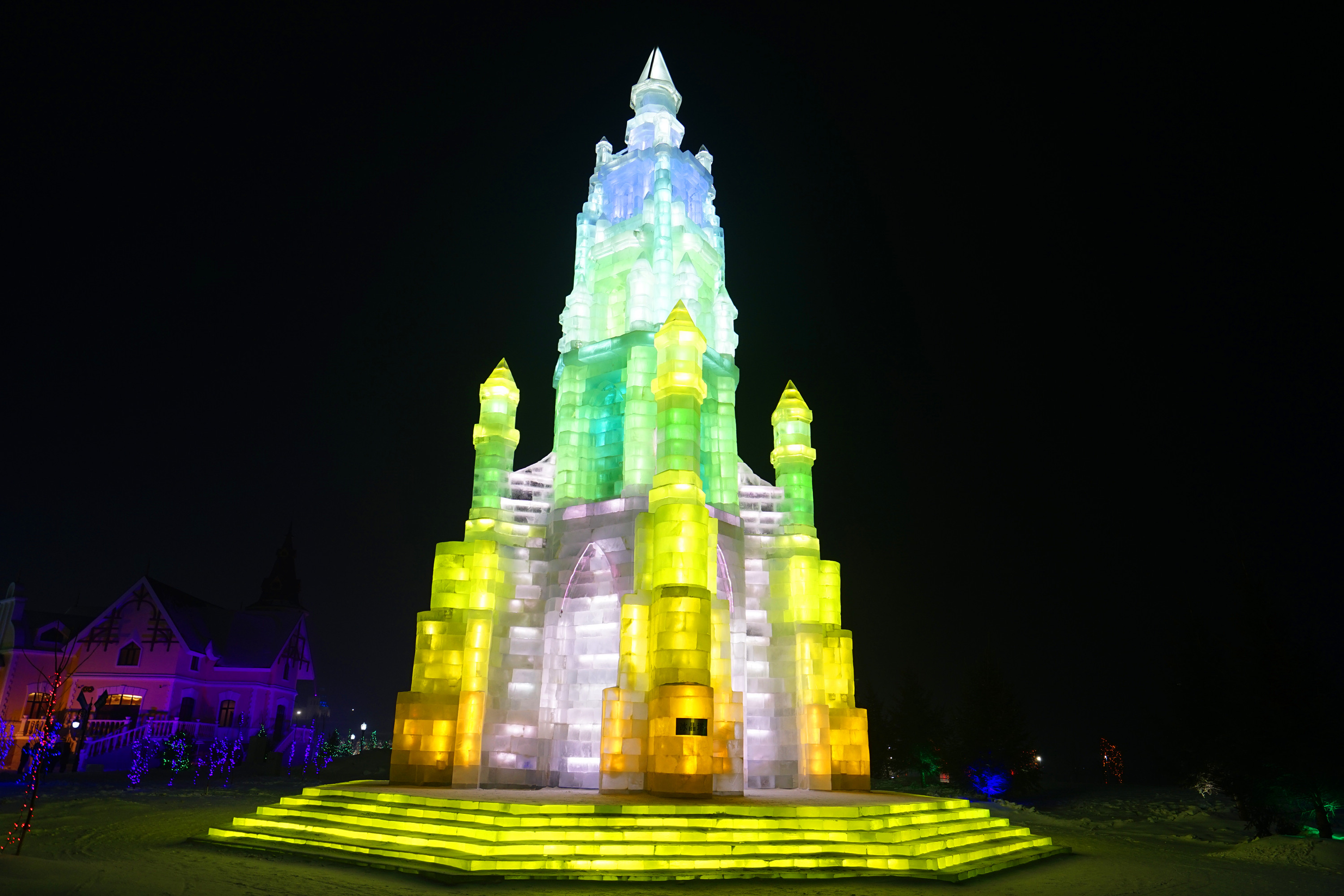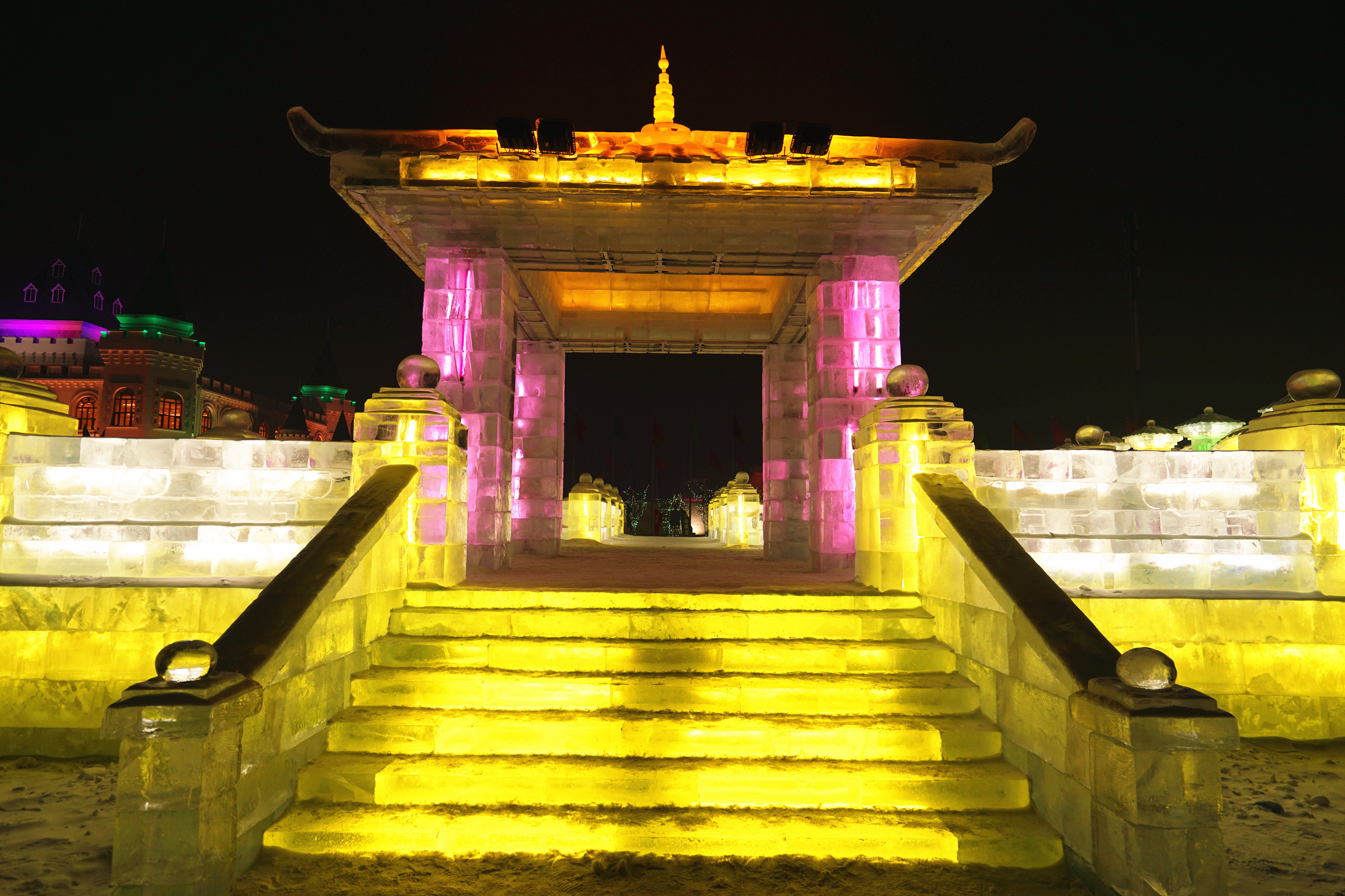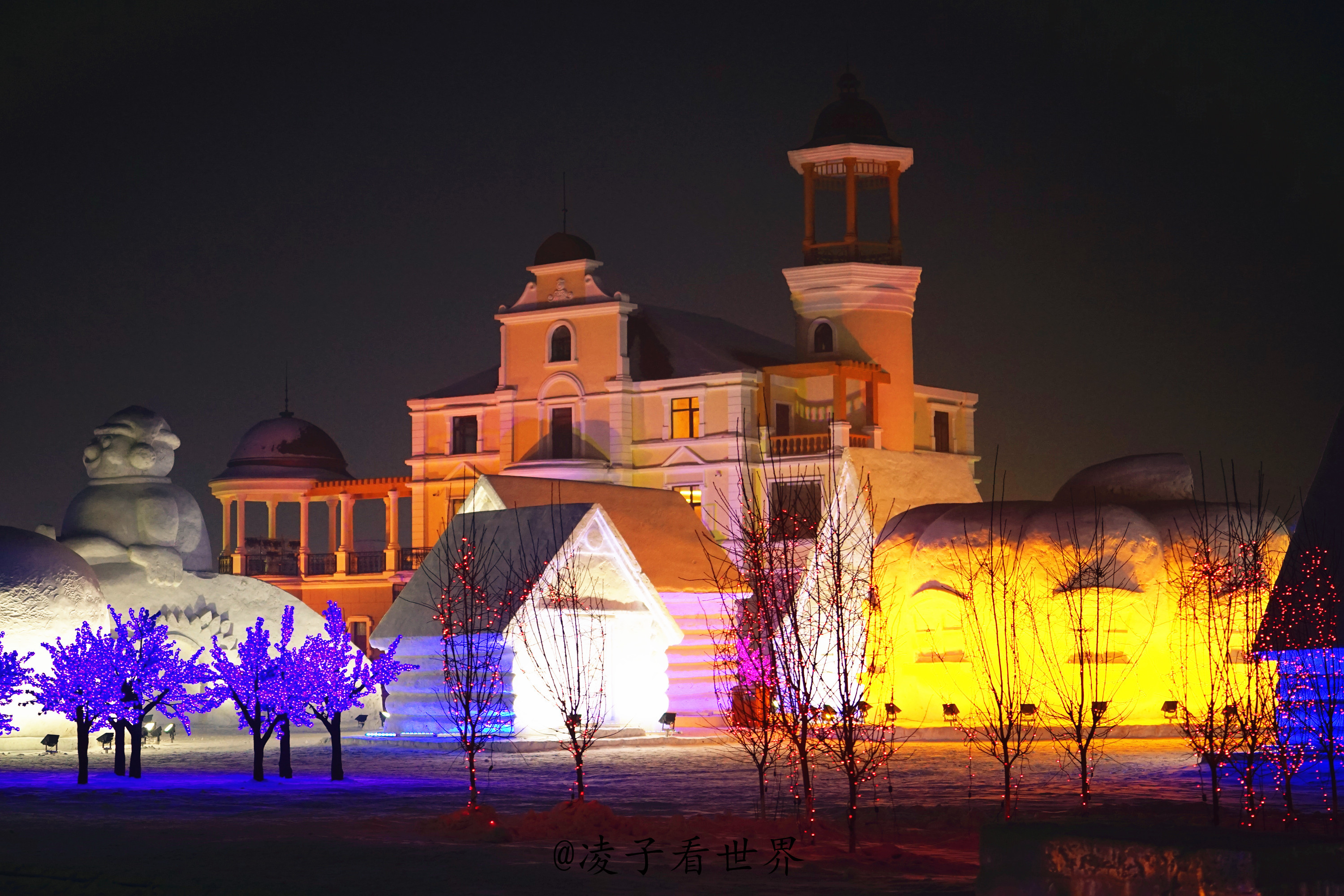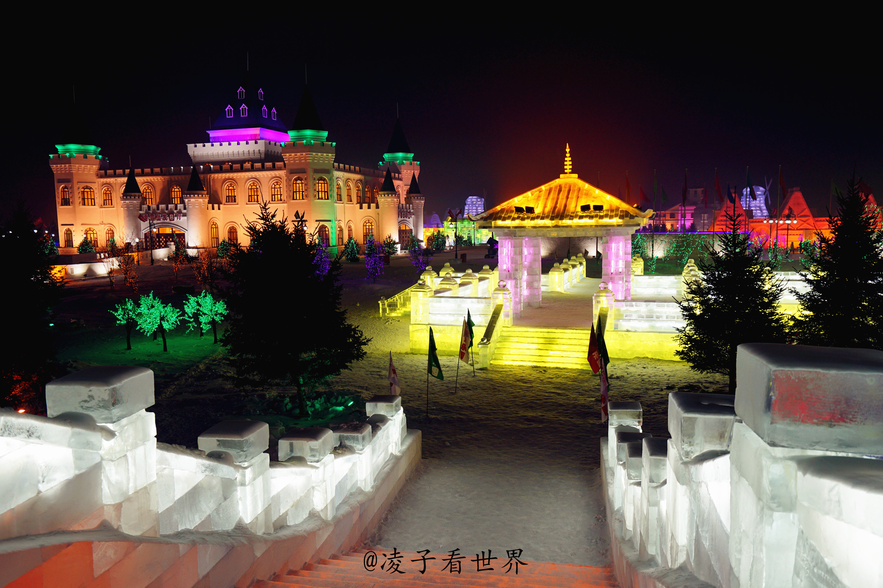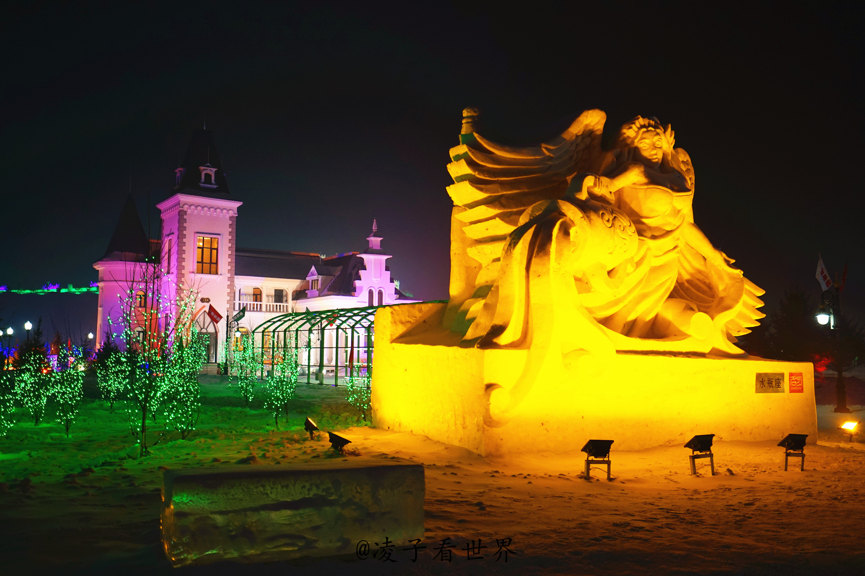 冰雕一直都是东北特有的,尤其是哈尔滨呼兰湿地公园欢乐冰雪世界,夜晚的冰雕看起来是极其的美。雪雕旁的镭射灯,冰雕内的彩灯,灯灯相映成辉,座座光彩照人。置身其中,忘却了彻骨的严寒,仿佛时间停滞。只知道,我们所在的仿佛并非人间。在这冰雪的世界里,一切的寒冷都被赶走,留下的只有那颗火热的心。渐渐地,你会发现自己已经融入了这片童话世界,在安静与梦幻中发挥一切的想象,去编织一个遥远的雪国故事。