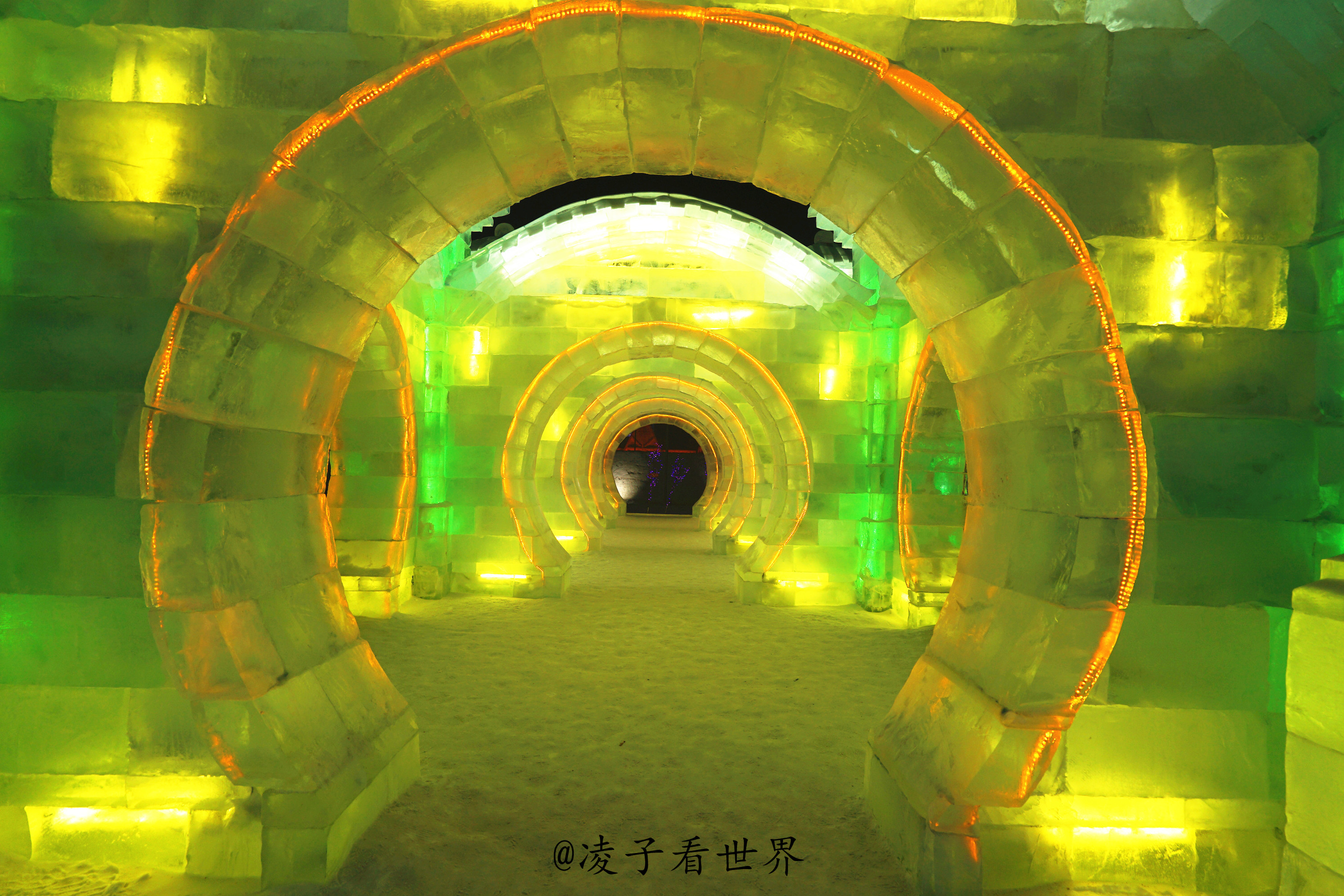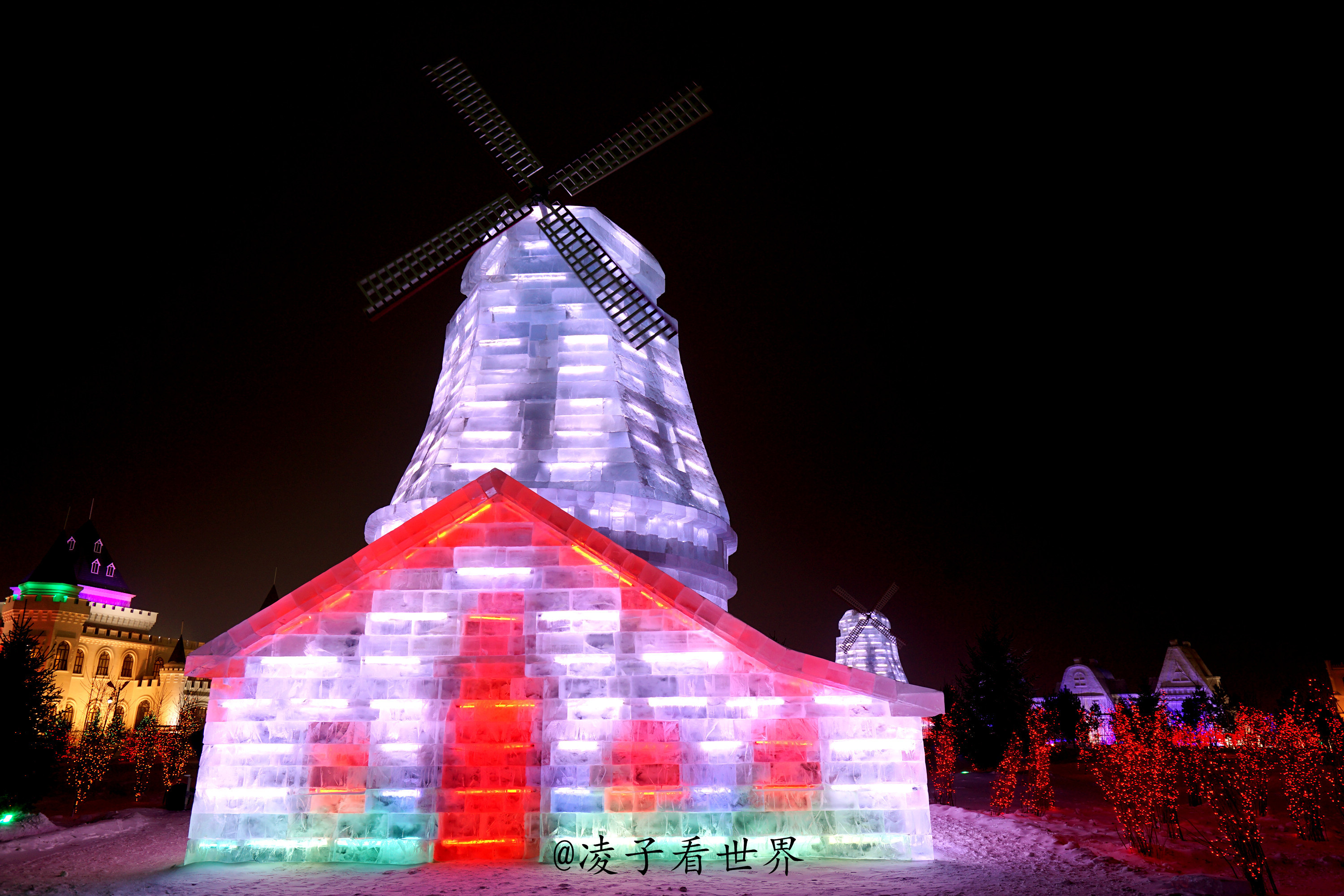 冰雕风车惟妙惟肖,旁边的雪堡可以进去玩,在这里捉迷藏最好不过喽!
