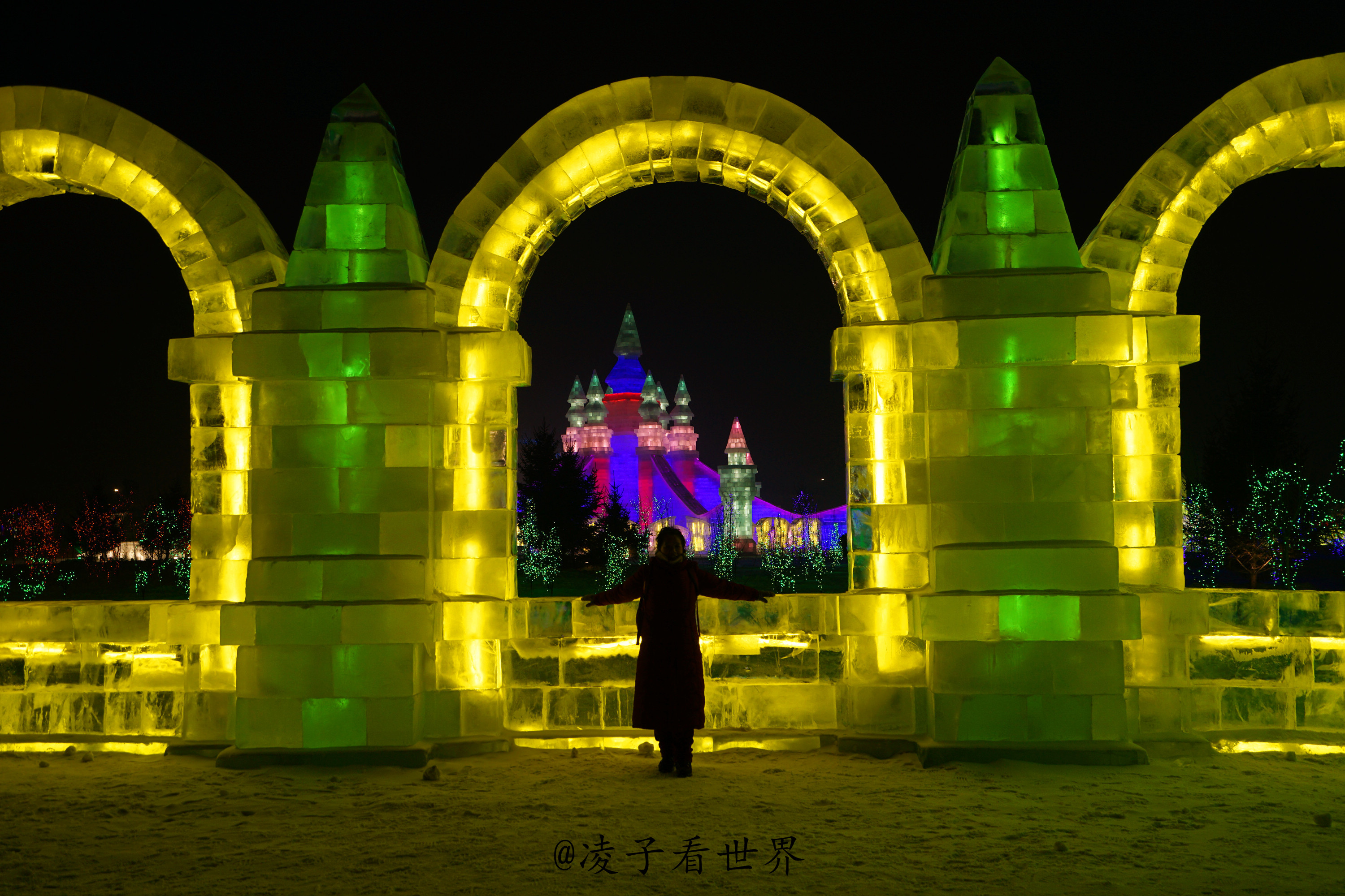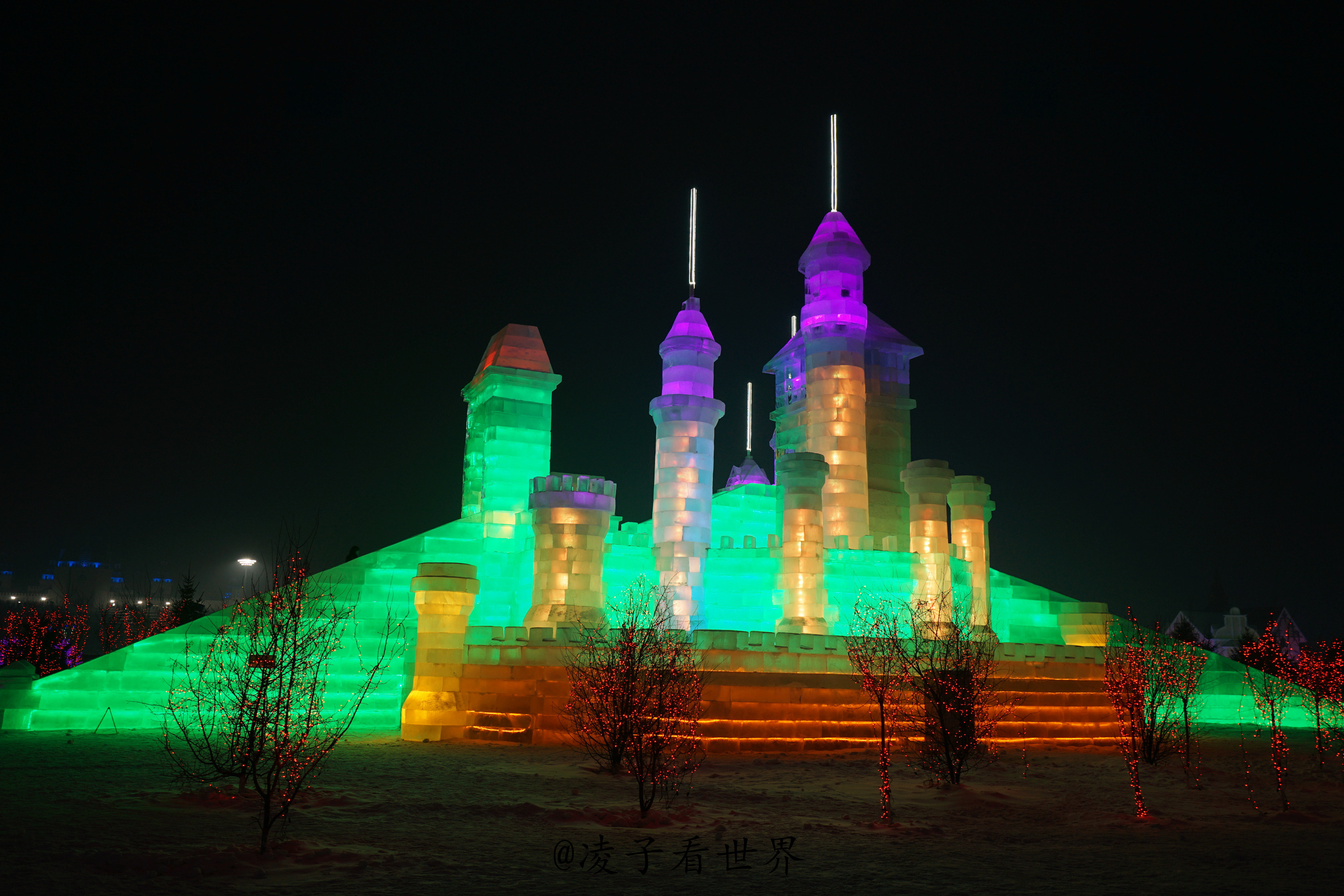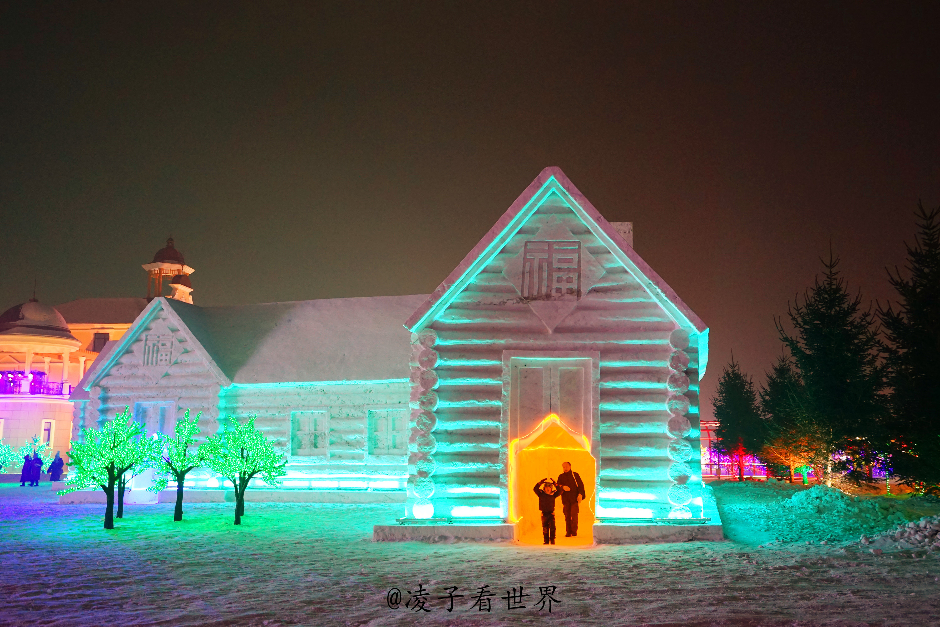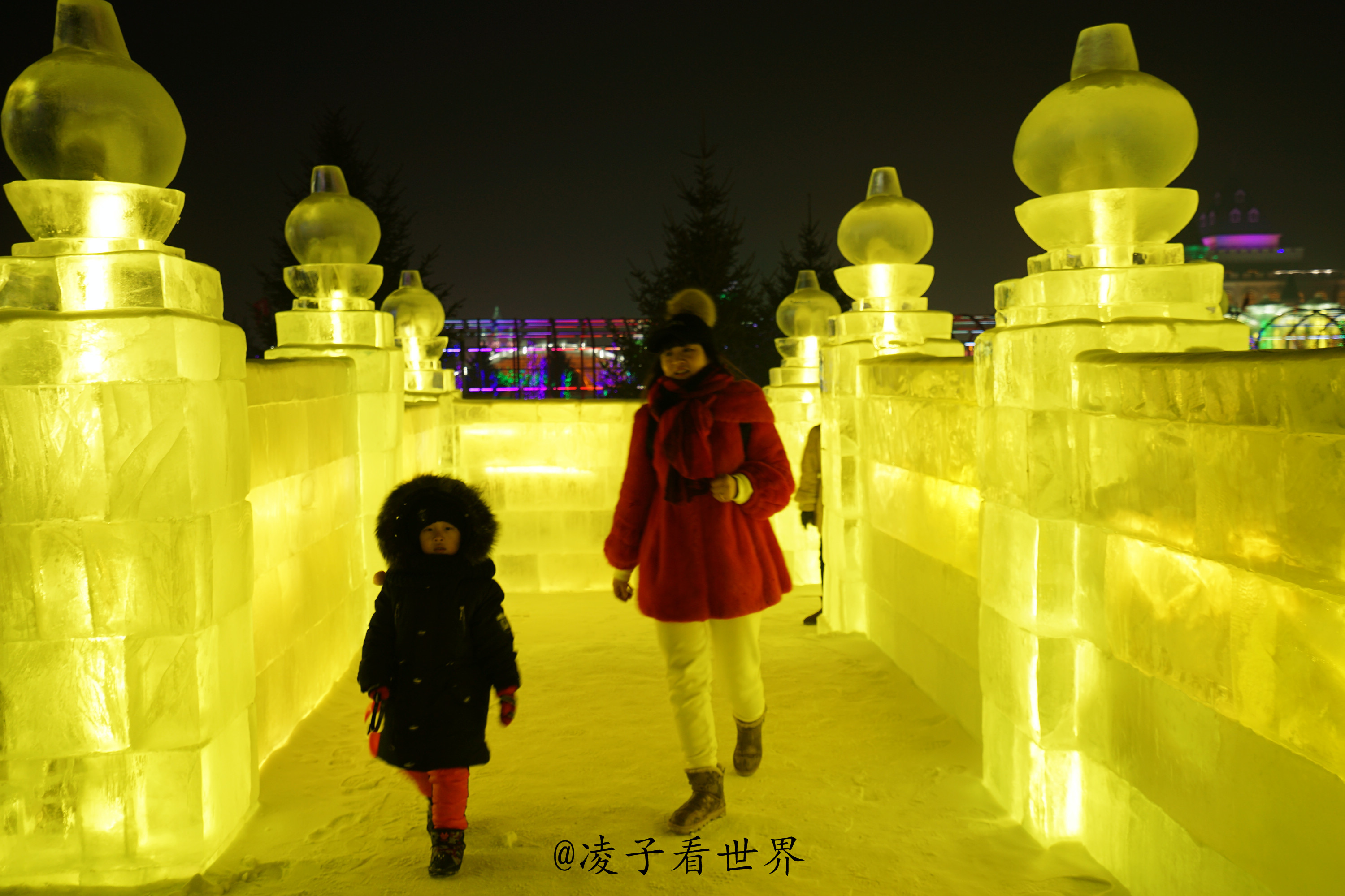 此次东北之行最期待的是哈尔滨,对那里的异国情调充满期待,对那里的冰雪世界充满幻想。行走在哈尔滨的呼兰河口欢乐冰雪世界,所有的期待与幻想都真实地展现在眼前,那种感觉只有身临其境,才能感受。一座座美轮美奂的冰雕在夜晚的霓虹灯下显得既梦幻又美丽,真实的体验一回行走在童话世界。