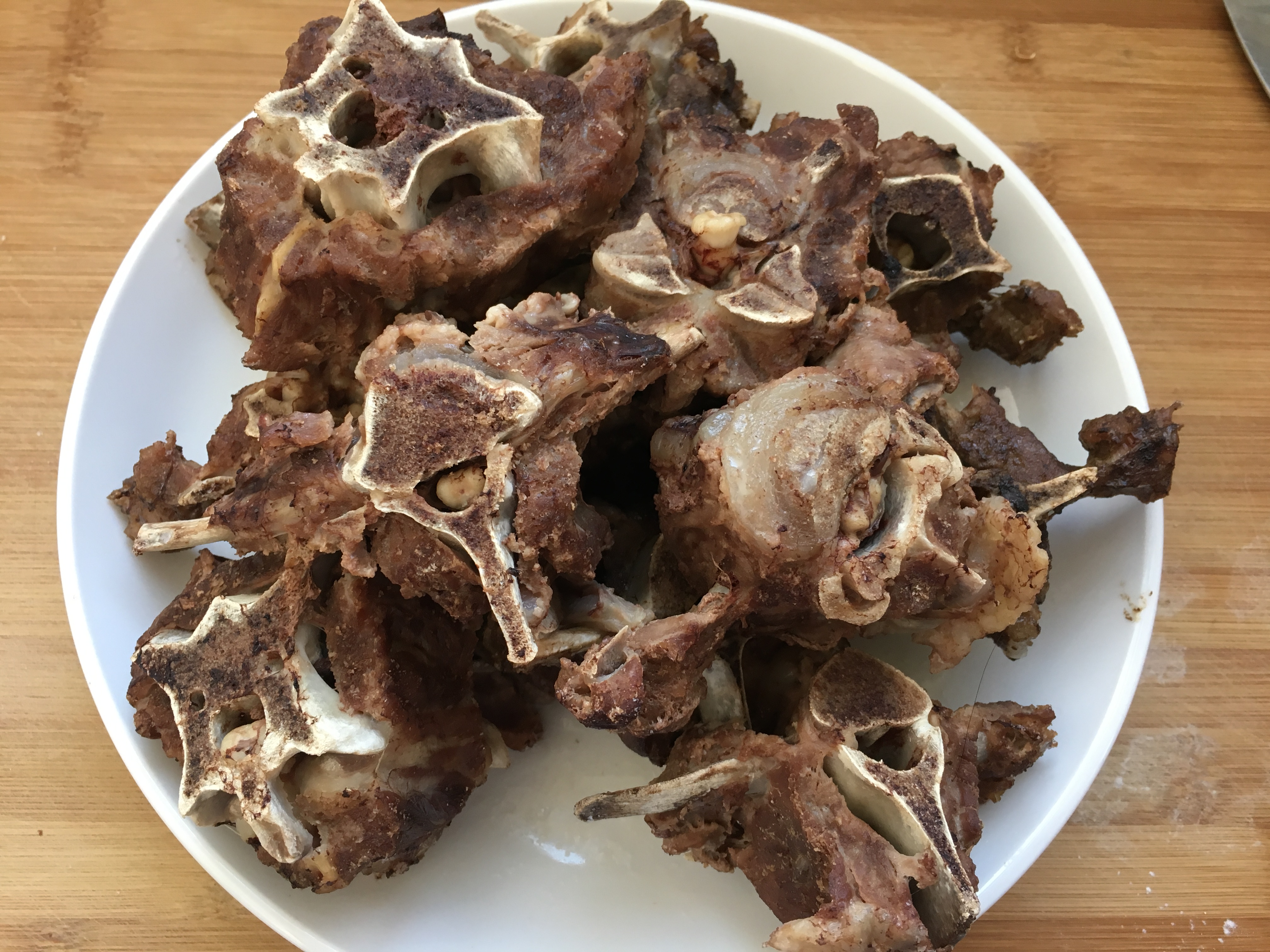 海参被我做成了清淡的蘑菇海藻海参汤,忙的忘记拍照了。羊蝎子被清煮之后然后红烧了一下,直接用的重庆火锅料,麻辣鲜香。
