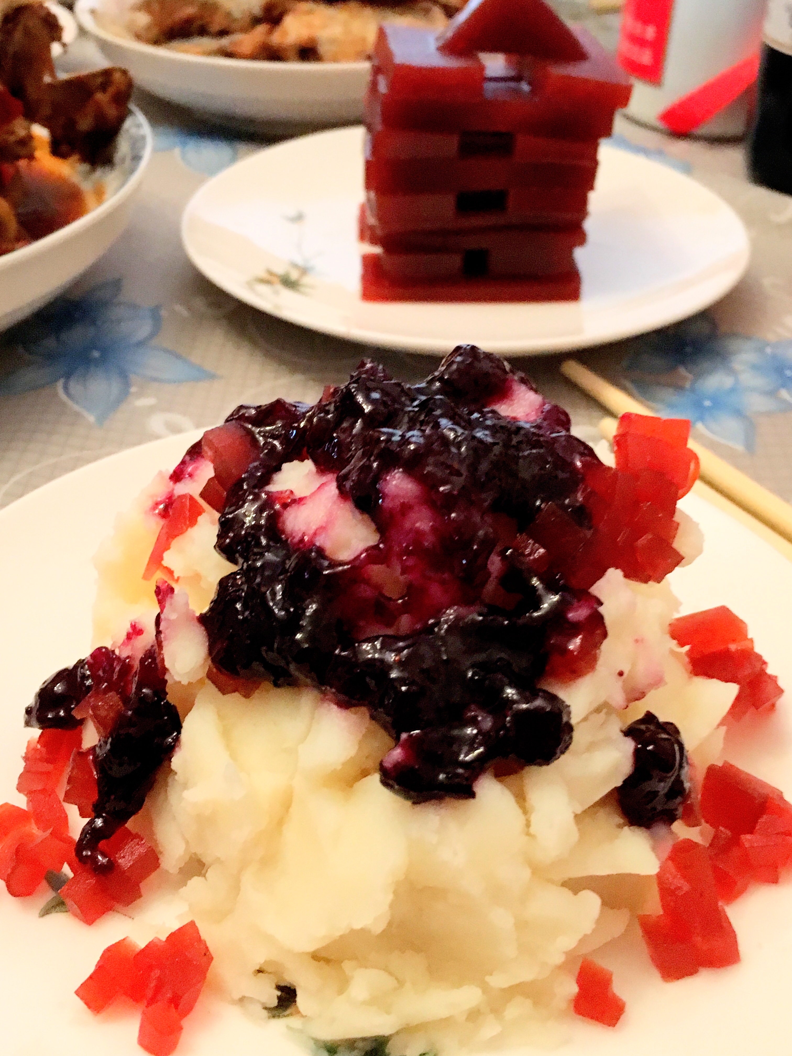 蓝莓山药简单又好吃,蒸一蒸就可以,牛肉是朋友送过来的。