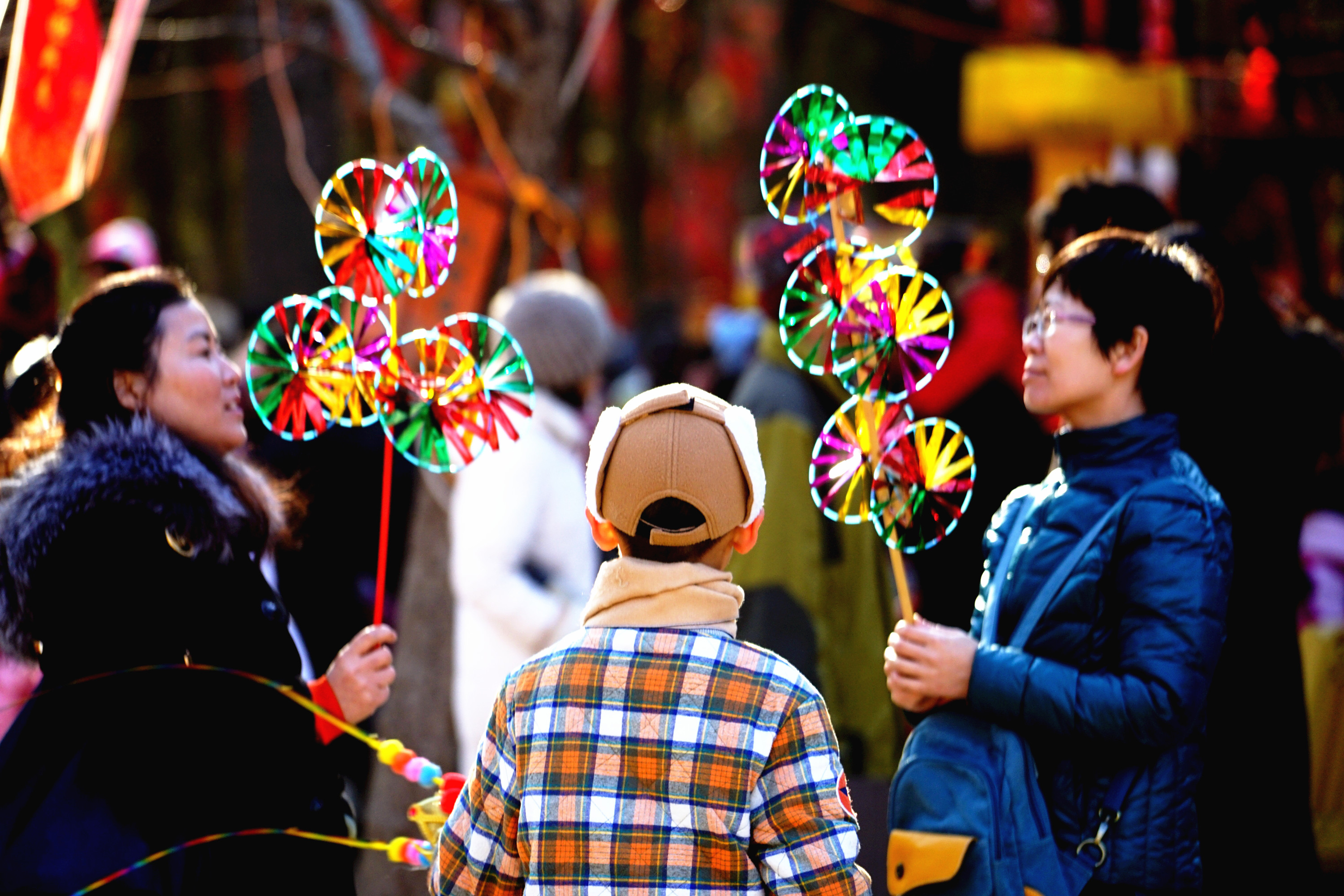 庙会上的风车不仅是孩子们最喜欢的玩具,连大人们都玩的乐此不疲,大风车吱扭扭的转,这可是我们小时候的玩物,如今的风车做的是又漂亮又好看,怪不得现在的孩子也喜欢。