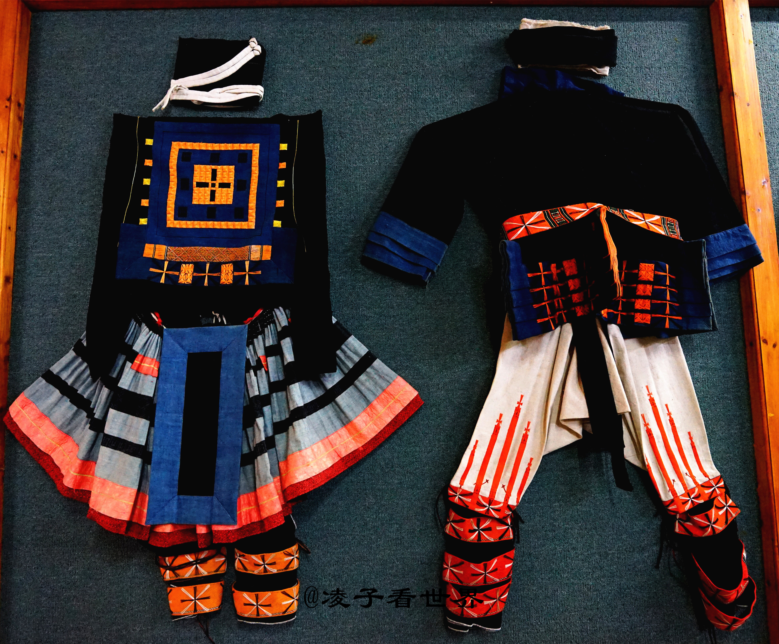 白裤瑶服饰工艺精湛,样式简朴古老,手工繁琐,一套瑶裙从纺线到做成裙子,最少需