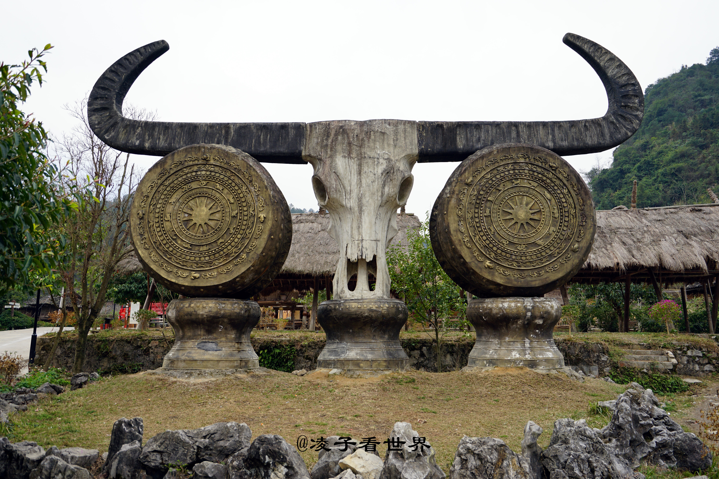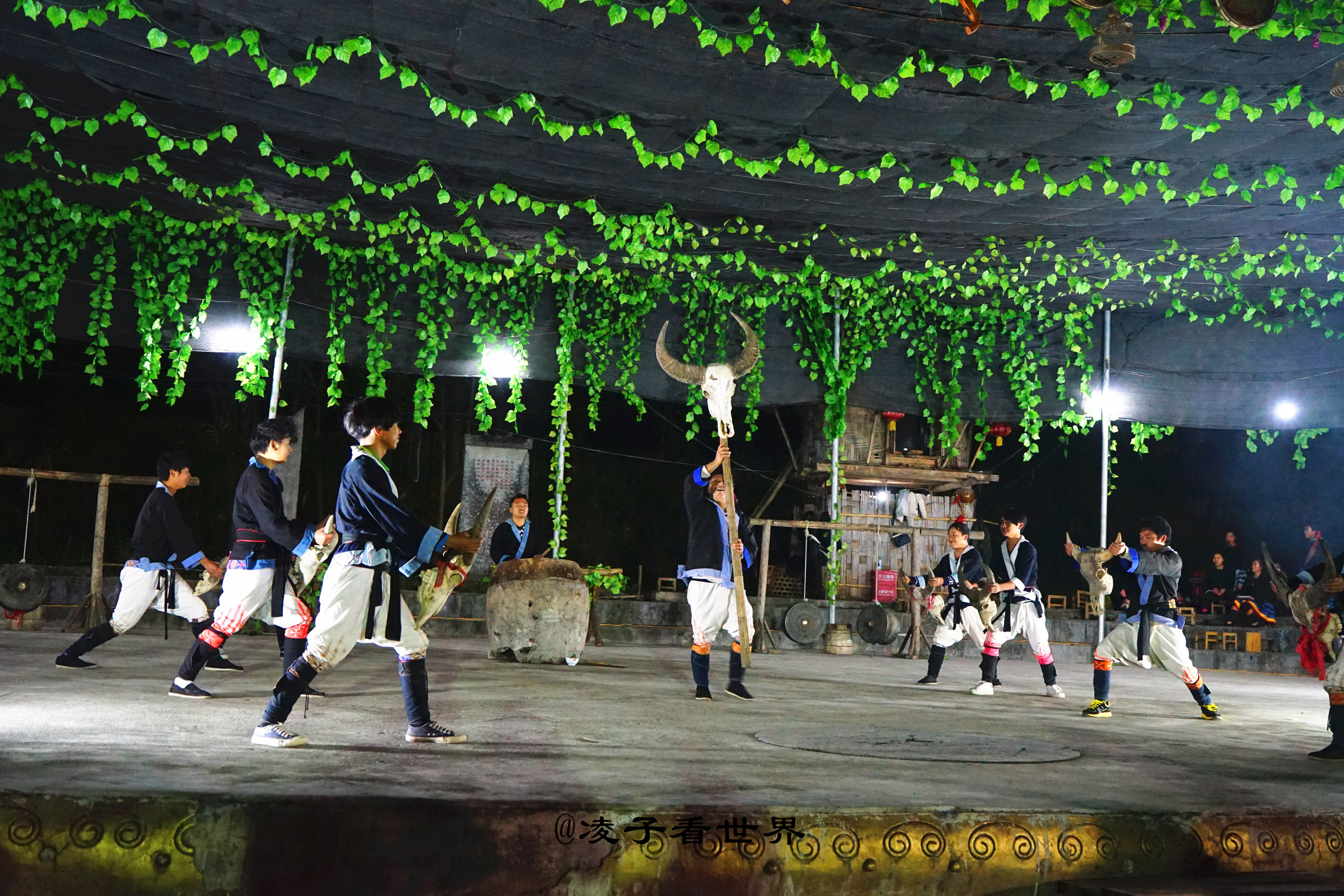 矗立在村中的巨大铜鼓是不能随便敲的,所以来的时候一定要注意。白裤瑶的铜鼓已经有三千多年的历史,一般在每年秋后的农闲时节为庆祝五谷丰登或者重要的节日、逢老人过世时敲打。白裤瑶自从有了铜鼓以后,就把它看成是本民族的象征,人气兴旺的寄托。铜鼓舞不仅是一种文体活动,它还与白裤瑶青年的爱情紧密相连,白裤瑶族青年中,很多青年男女都是在跳铜鼓舞后的晚上结成称心如意的伴侣。