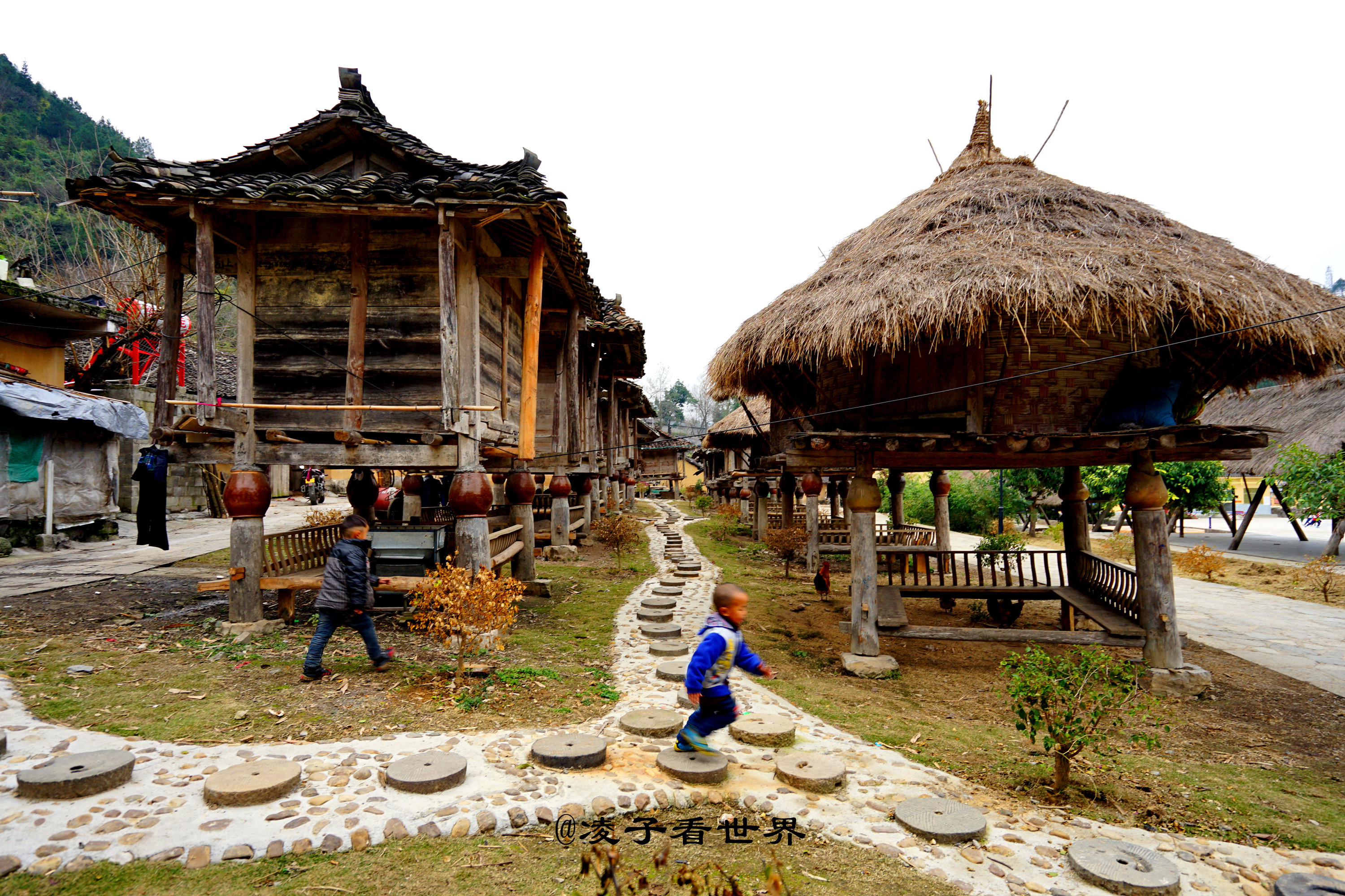 铜鼓的后面是一排排储存粮食的粮仓,村子里所有村民家的粮食都在这里,一家一个,放在这里而且架的那么高,主要是为了防止火灾烧毁人们赖以为生的粮食。