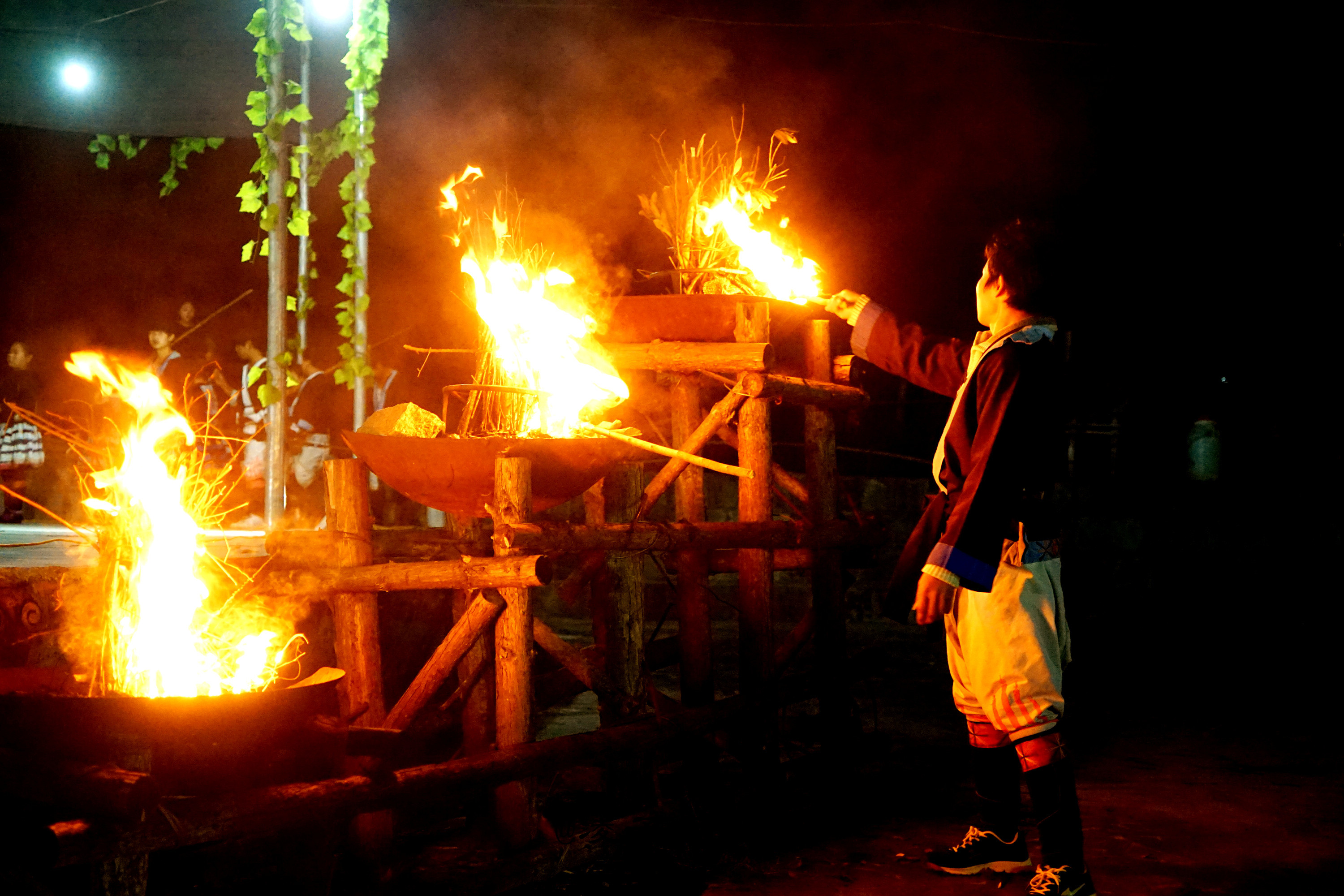 白裤瑶民族创造了自己独特的民族文化,这次我们来到这里看到他们精彩的铜鼓舞,猴鼓舞,火把舞等。据说这个猴鼓舞是因一位瑶族老汉在山地敲打皮鼓,驱赶偷吃黄豆的猴群。开始,猴群被鼓声吓得不敢下山。后来顽猴却趁着他熟睡后,悄悄击鼓玩耍。老汉醒来后,看见猴子打鼓觉得奇怪,看着看着,不禁被猴子击鼓,边跳边舞的动作所吸引。他暗暗记住了这些动作,回家后模仿起老猴打鼓,于是便有了这猴鼓舞。