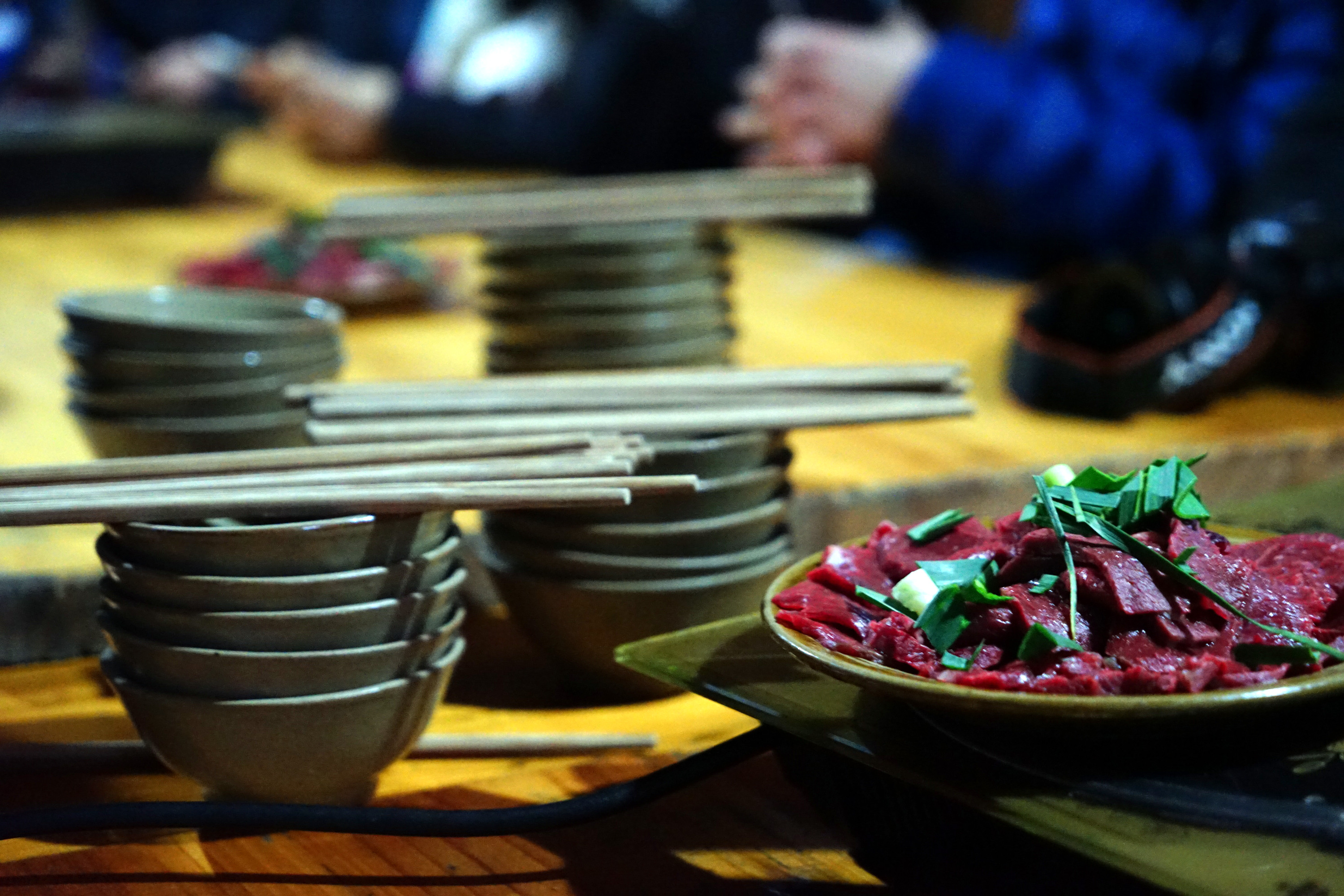 瑶族古寨的农家长桌宴可都是纯绿色的食材,家养的土鸡火锅,涮着刚从稻田里抓来的鲤鱼,还有这新鲜的牛肉,可是吃着山间的野草,喝着山里的泉水喂大的。农家腊肉小炒也是相当鲜香。来了一定要吃完再走。