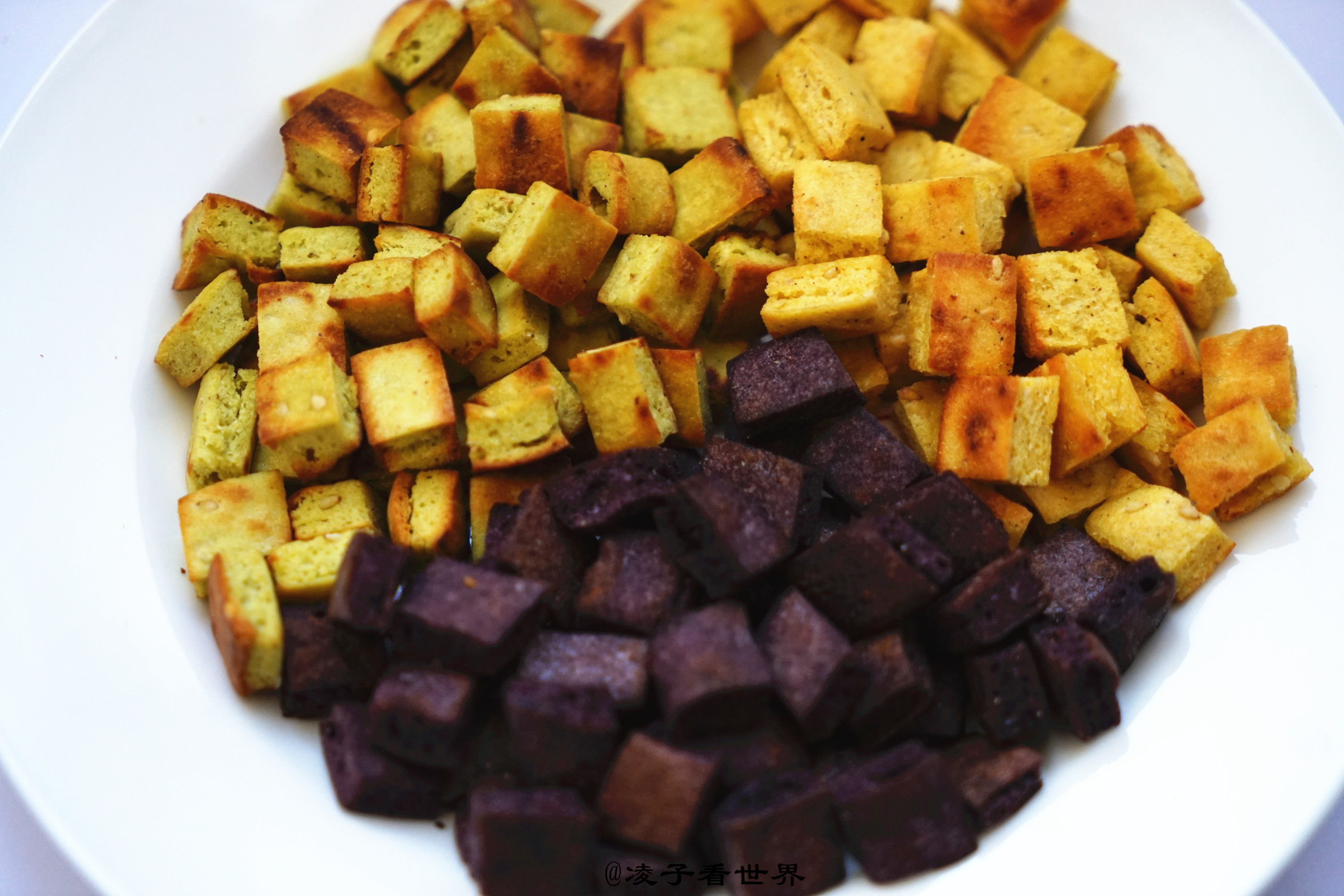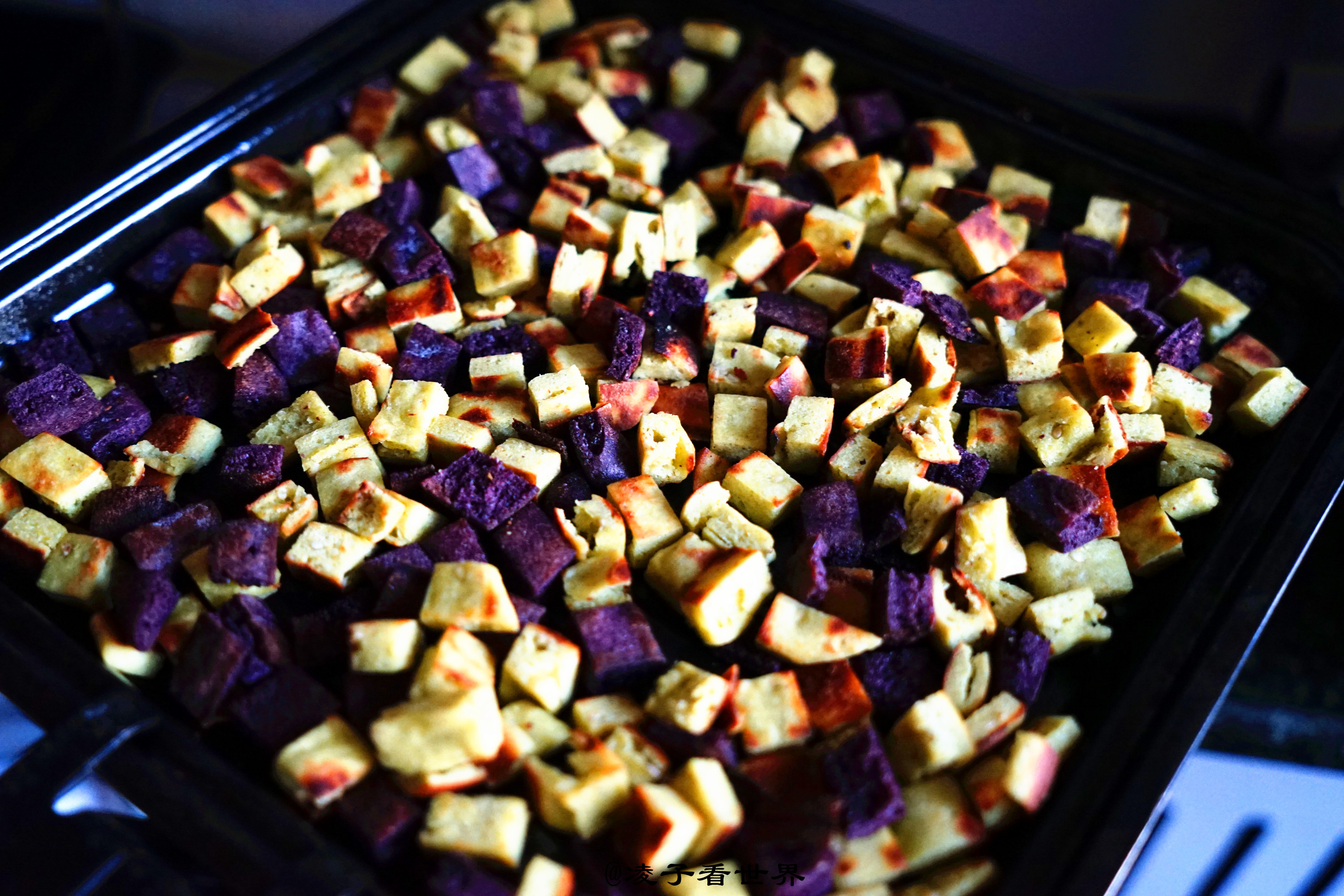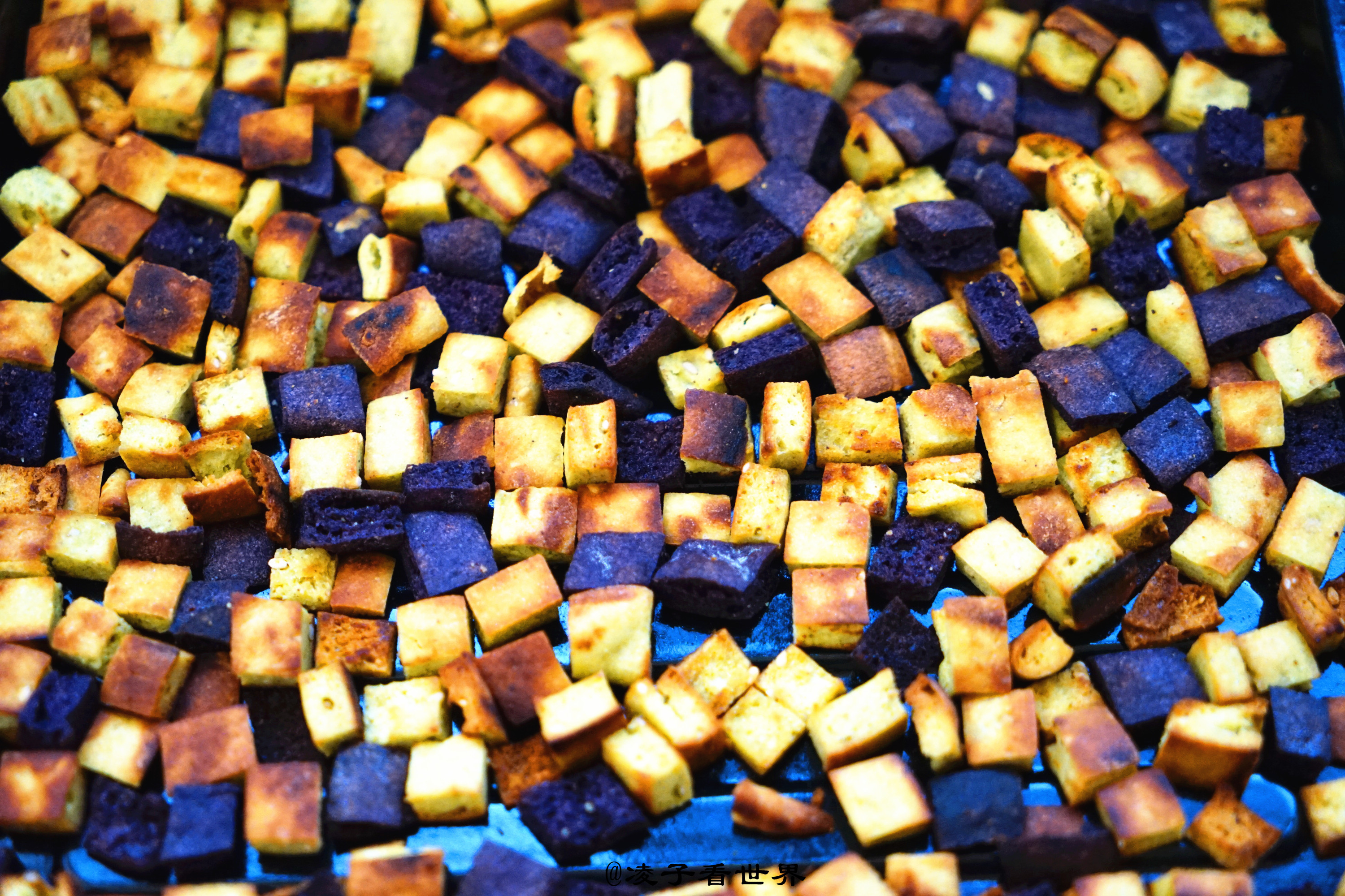 但是母亲每年还都坚持为孩子们炒馍豆,这个馍豆做起来也是不容易的。这次是我亲自做的。首先把面粉调好作料,盐,五香粉,芝麻,与干面粉拌匀。然后用发粉把面发好,发好的面擀成比较薄的饼烙熟。然后再切成棋子豆,最后还要在炒锅里炒成酥脆的馍豆。这次我是先在炒锅里放了少许油炒了几分钟,然后又放入烤箱,180度烤制了十分钟。又干又脆又鲜香的馍豆是我们一家老小最受欢迎的零食。