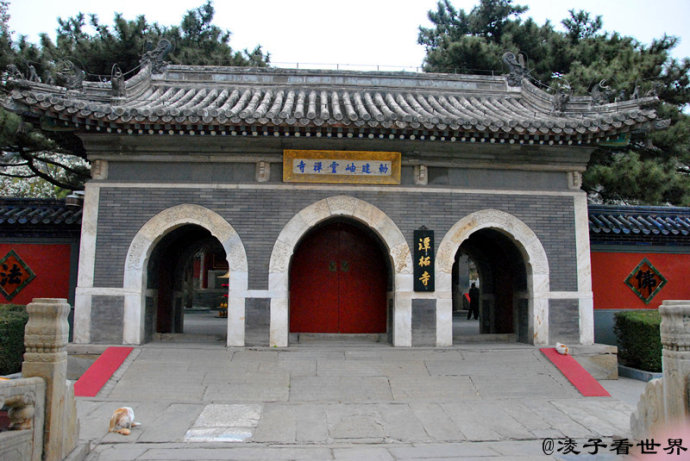 潭柘寺为北京著名佛教寺院之一,历史悠久,北京古谚有"先有十柘,后有幽州"。潭柘寺位于西郊潭柘山腰,寺以山上的龙潭、柘树而得名。潭柘寺镇也因此而得名。潭柘寺位于潭柘山麓,寺庙坐北朝南,背倚宝珠峰,周围有九座高大的山峰呈马蹄状环护,九座山峰宛如九条巨龙拱卫着中间的宝珠峰,规模宏大的潭柘寺古刹就建在宝珠峰的南麓。高大的山峰挡住了从西北方袭来的寒流,使潭柘寺所在之处形成了一个温暖、湿润的小气候,因而这里植被繁茂,古树名花数量众多,自然环境极为优美。