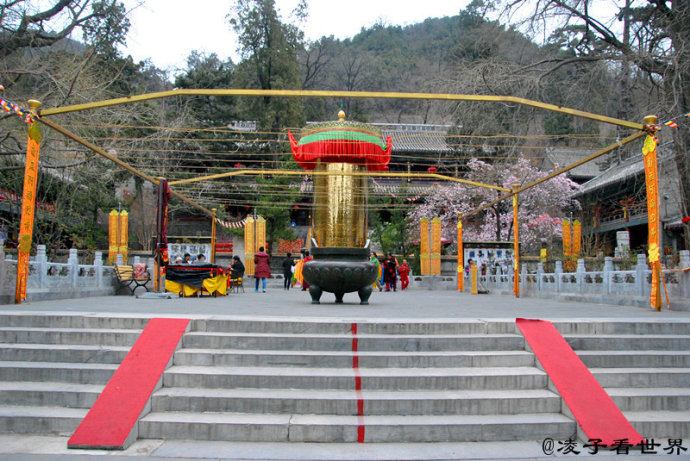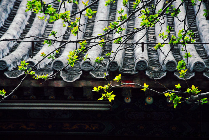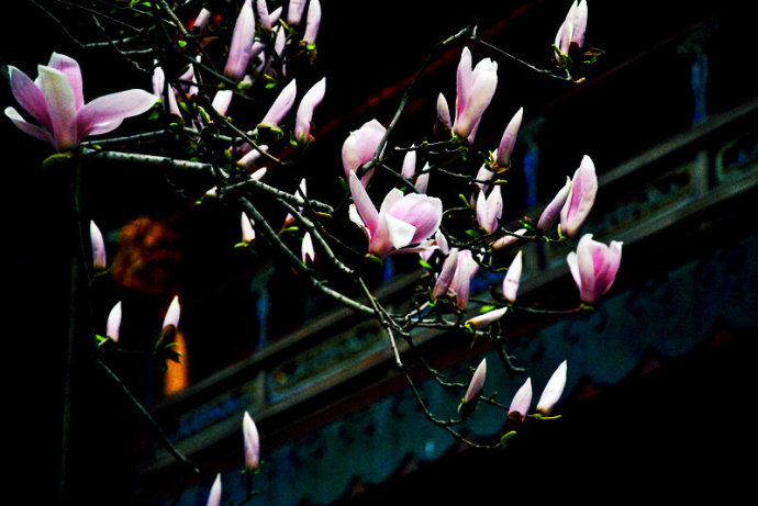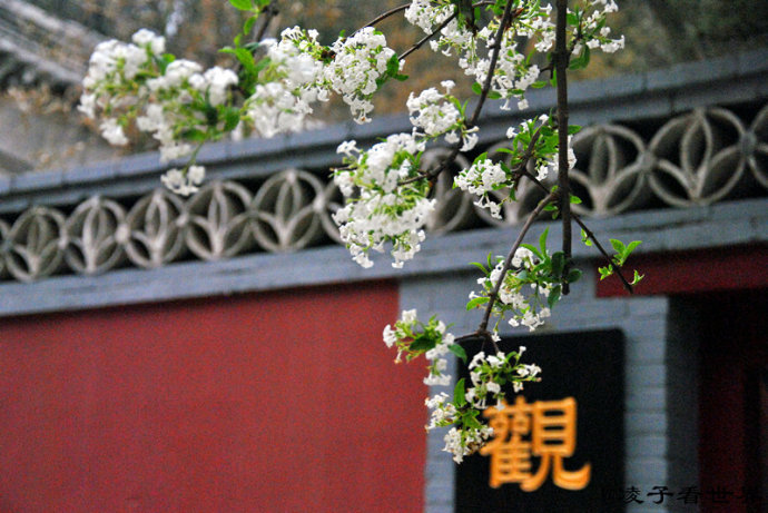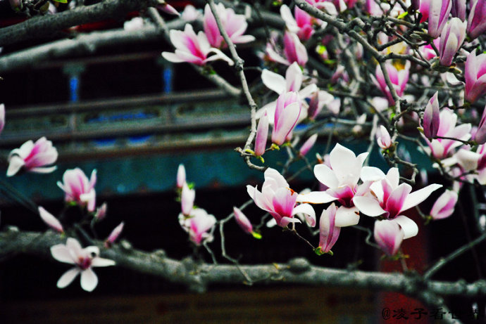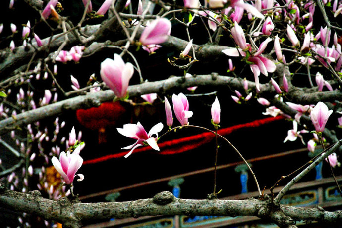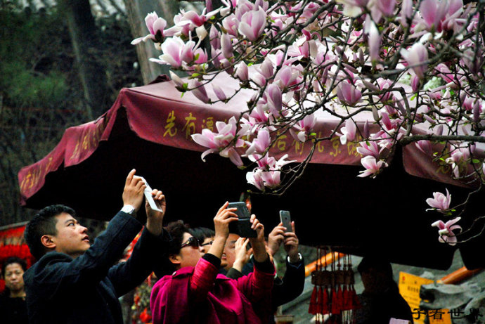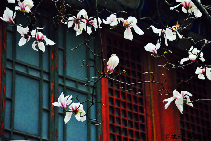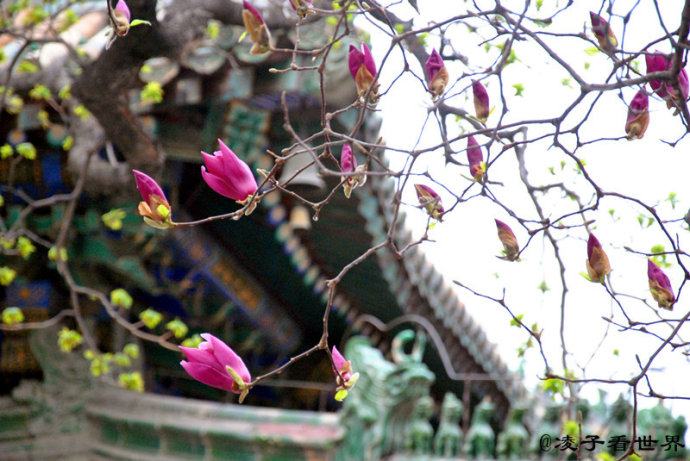 怒放的玉兰为这千年的古刹增添了春的活力。