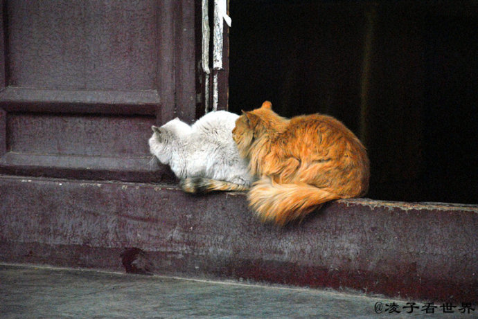 寺庙门口的小猫咪慵懒的自顾自的挠着痒痒,丝毫也不理会来来往往的行人。