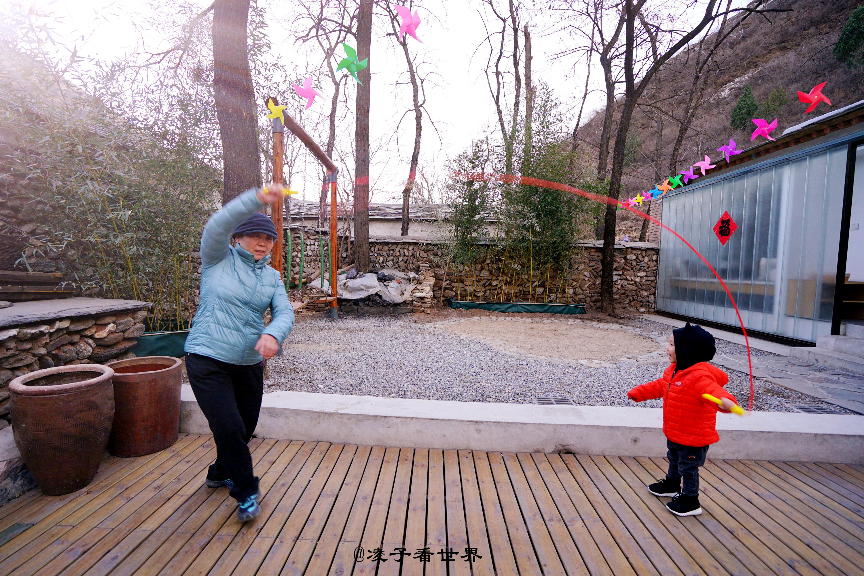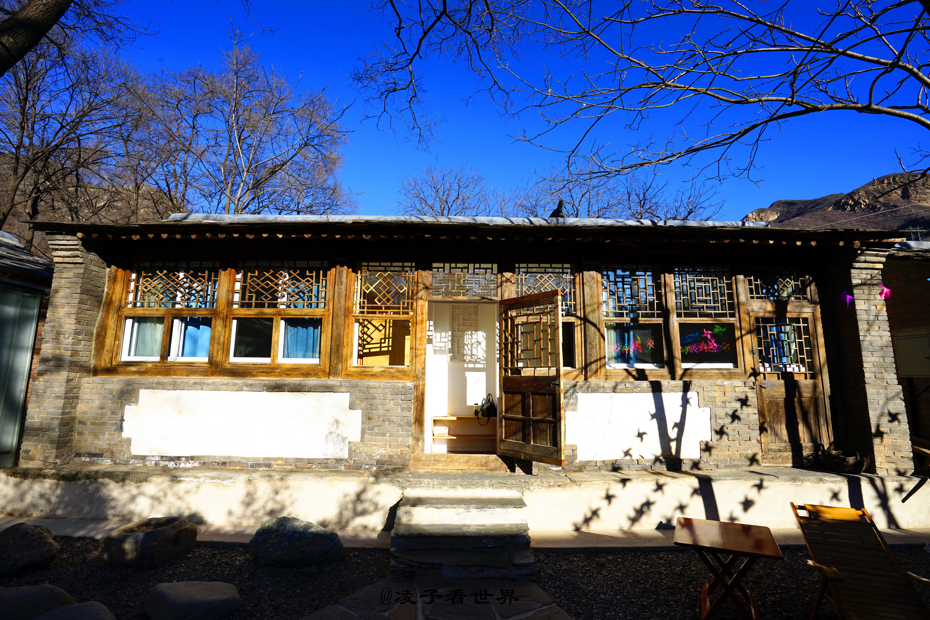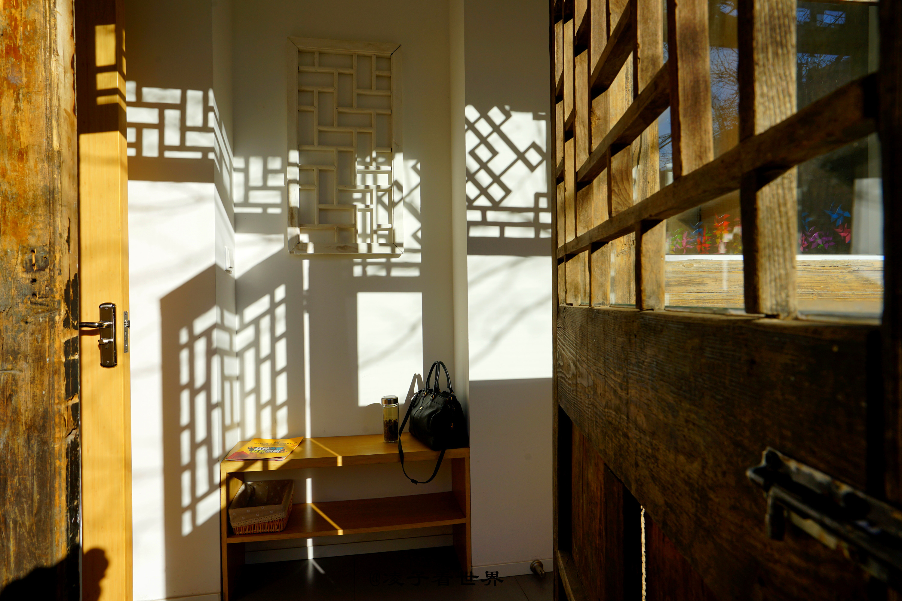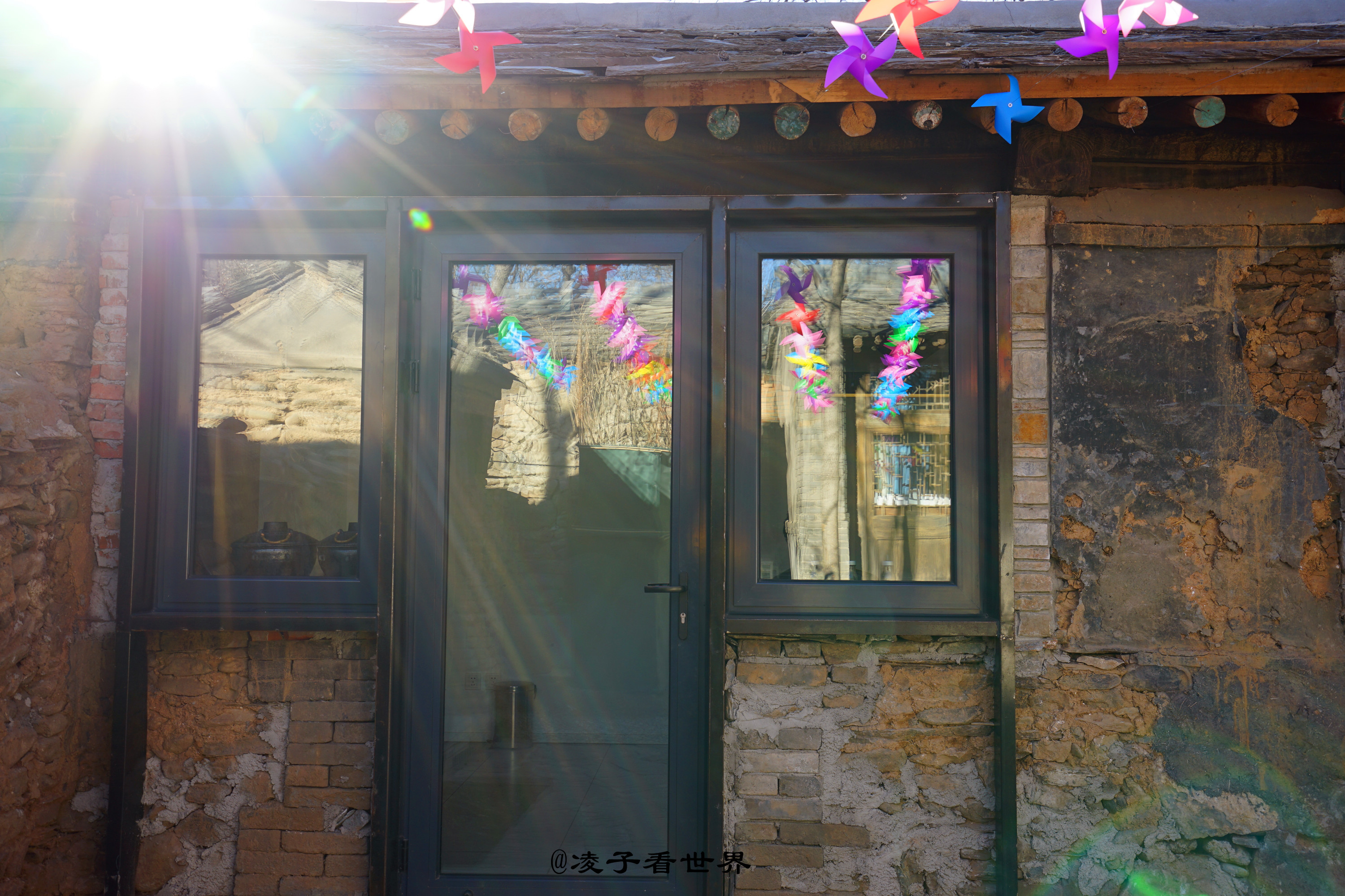 首院的老厢房,在春日暖阳的照耀下,厢房的窗棂影影绰绰映在屋内雪白的墙壁上,仿佛儿时的情景再现,院子里悬挂的彩色小风车在春风里吱吱作响,站在院里抬头看去房顶那一块块的青石板还是那年那月的模样。
