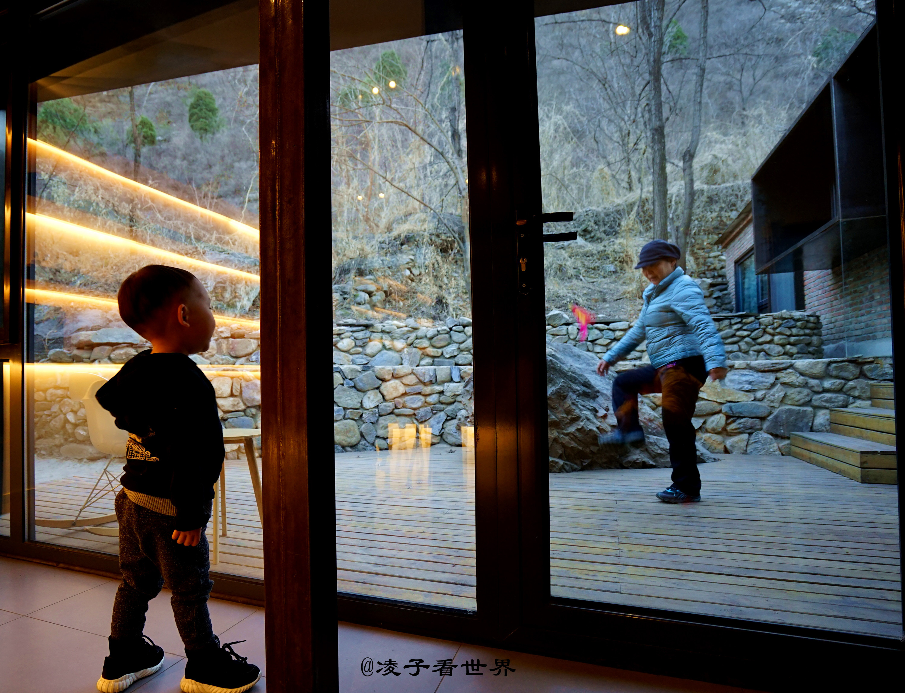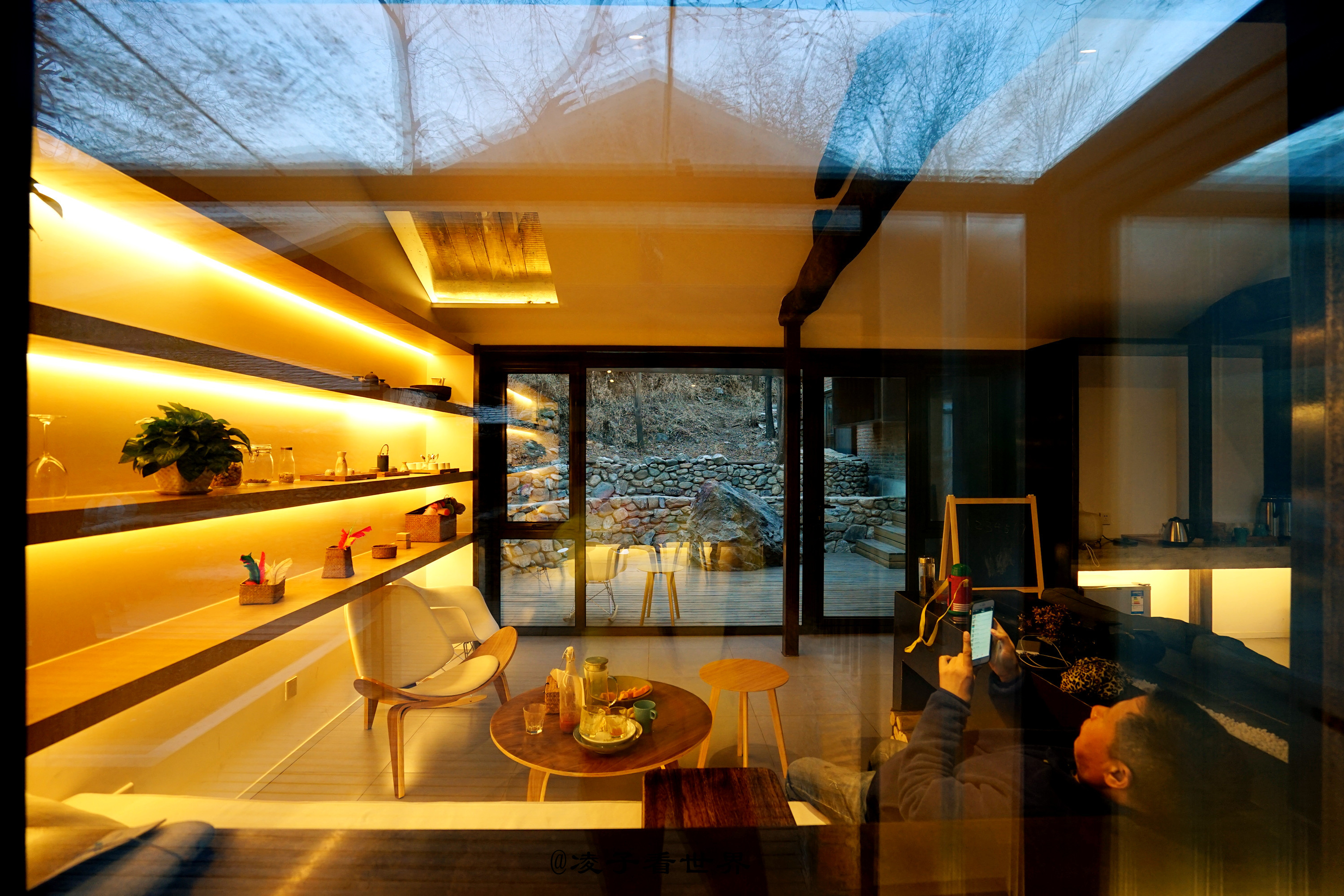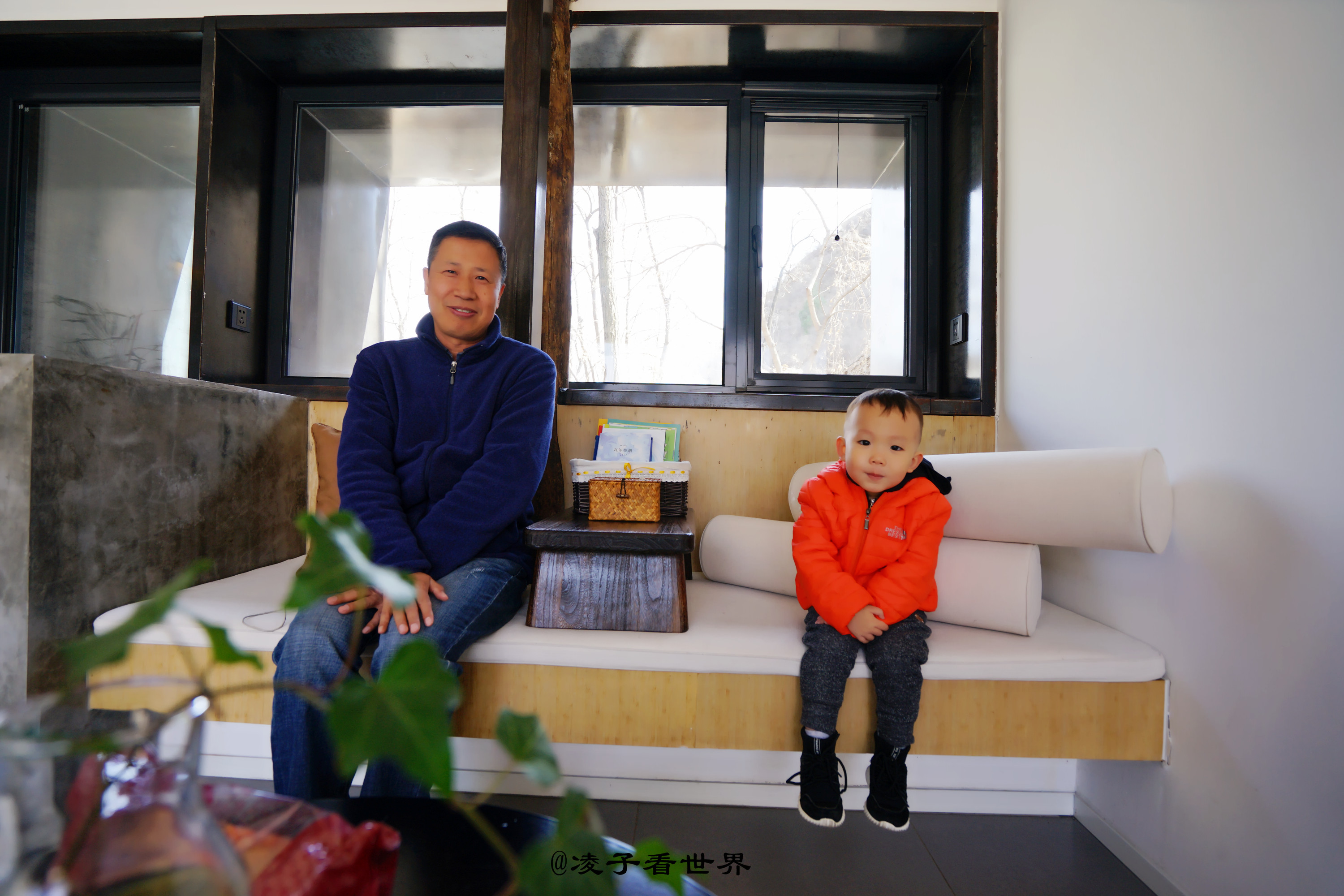 迈进后院的那一瞬间,我着实惊着了,这哪里还有老房子的模样,宽敞的大客厅,依窗而建的如榻榻米一样的茶座,背后是一扇明亮宽敞的大玻璃,放眼望去,眼前就是大山,田地。满眼都是风景。出去直接就可以爬山,无论你是在房间,还是坐在外面赏风景都是爽爽的。