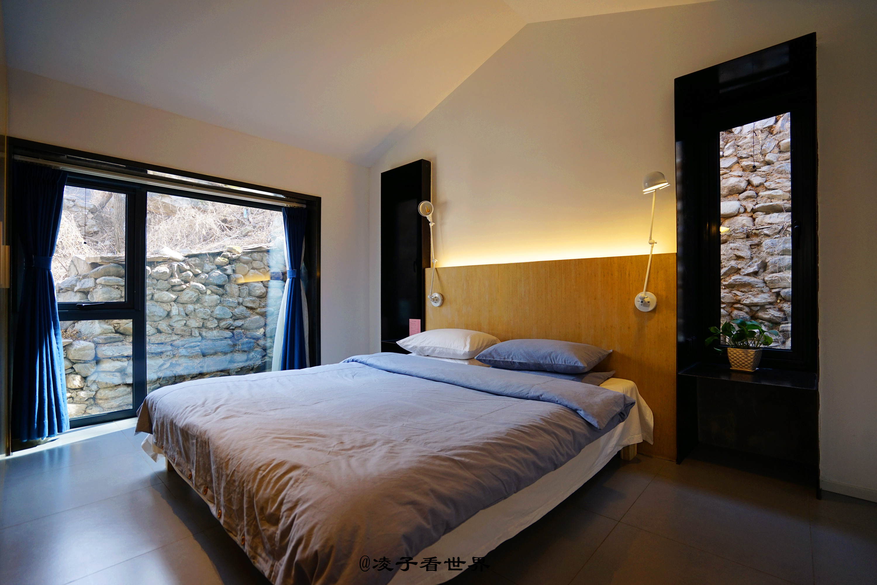 最让我意外的是房间里居然还保留了一块能看见老墙体的玻璃,几乎每个房间都是这样,独到匠心的设计为这农家小院增色不少。