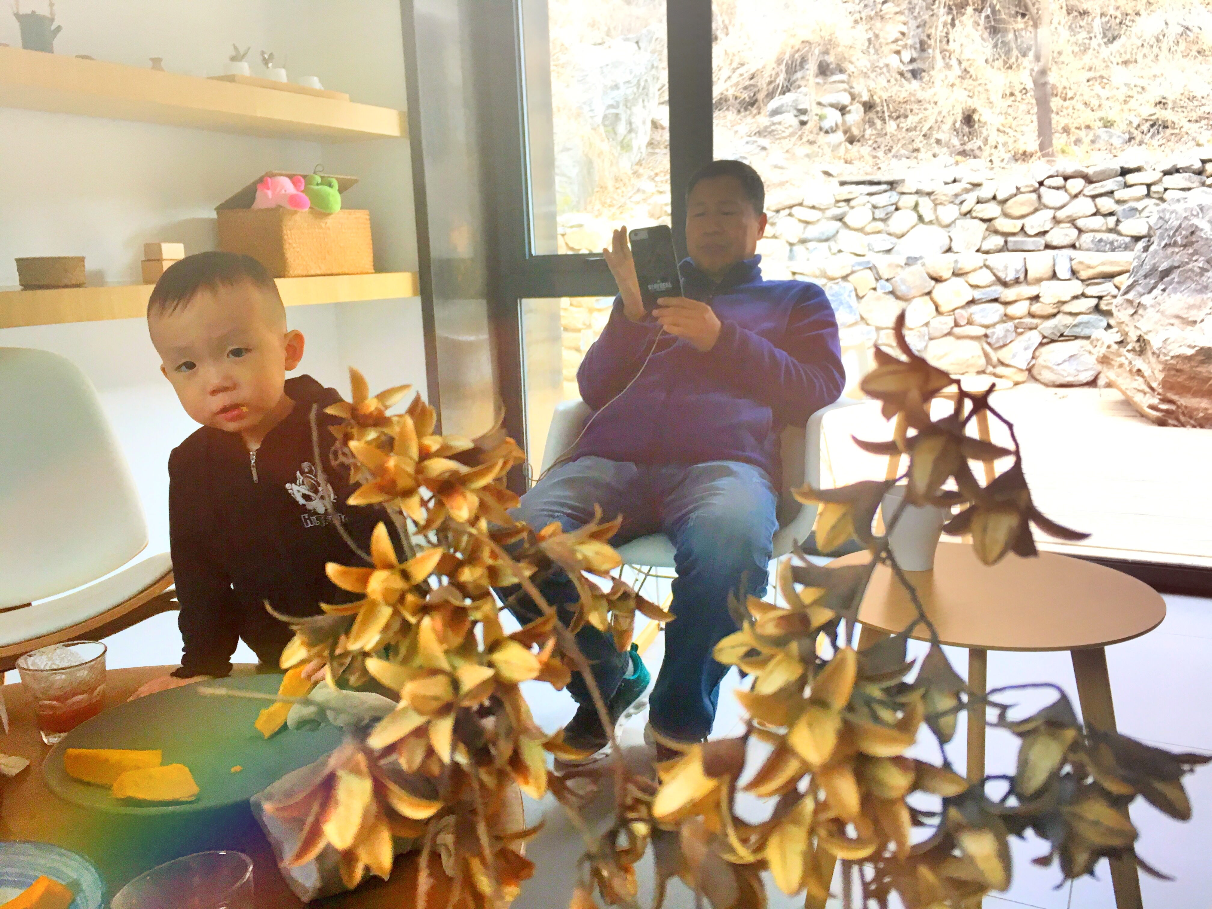 客厅中木质隔板墙上那温馨的小玩偶,一罐罐去年的老花生,一盆盆绿油油的吊兰。香甜干面的地瓜,甜蜜的南瓜,精致简单的绿色田园下午茶,配上姥姥家自己鲜榨的野生山楂汁,酸甜清爽,清淡养生,孩子吃的是不亦乐乎。