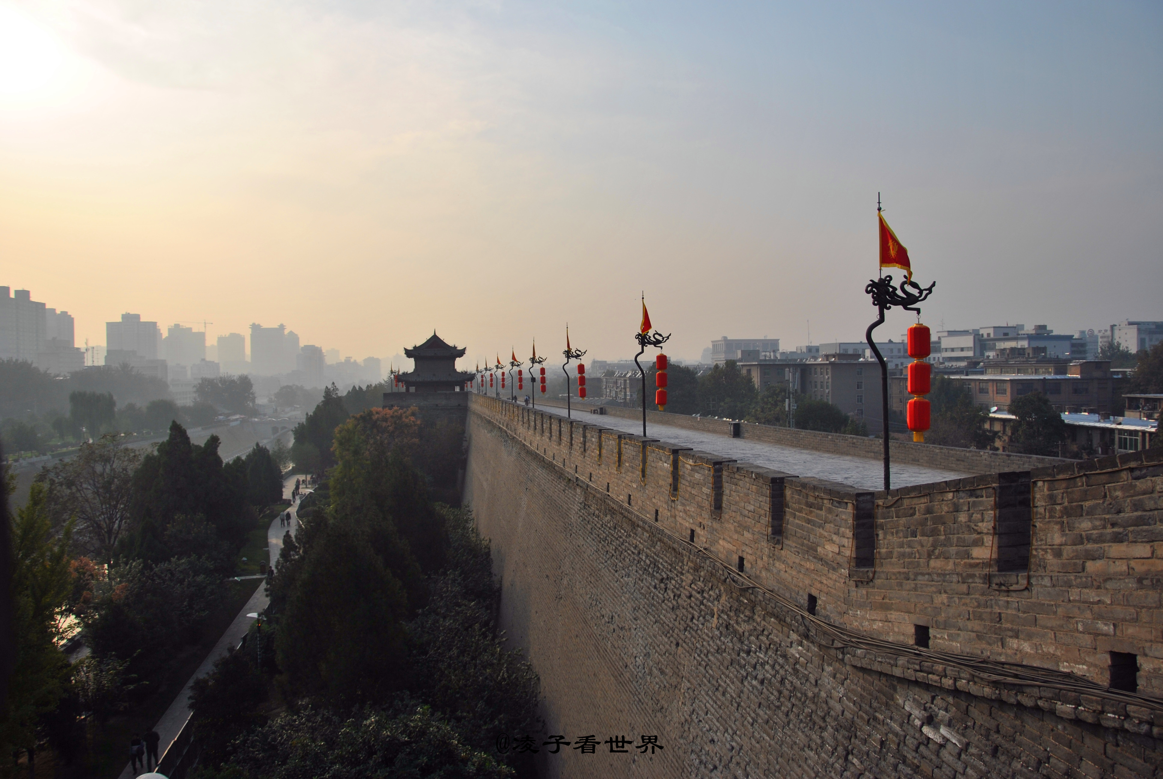 站在城墙上,看着城下那热闹的街道,行色匆匆的路人。一座座高楼大厦密密麻麻的矗立在城墙内外。西安如今已是一个以旅游为主的一个城市,所以什么时候西安城里都是车水马龙,人头攒动。那个硝烟弥漫,金戈铁马的年代已离我们太久远。只有这座城墙见证了它的更迭与战争。