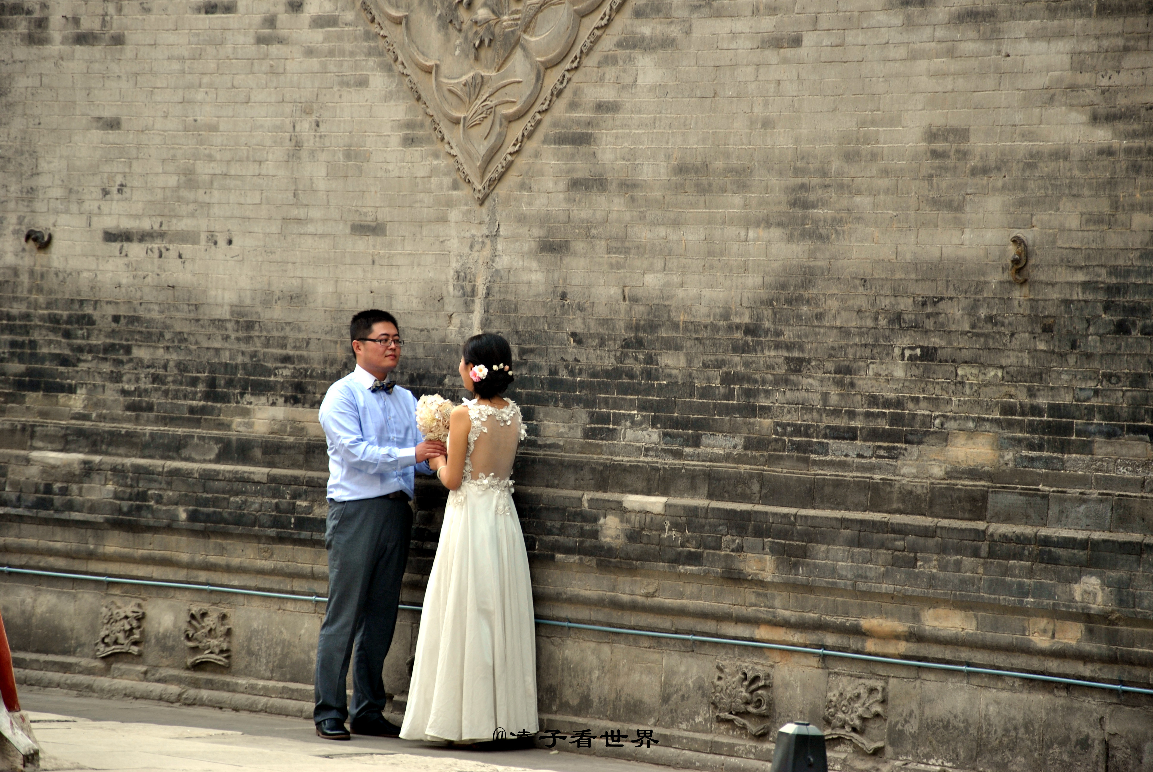 城墙下正在拍婚纱的情侣,让这古老的城墙见证他们的爱情。