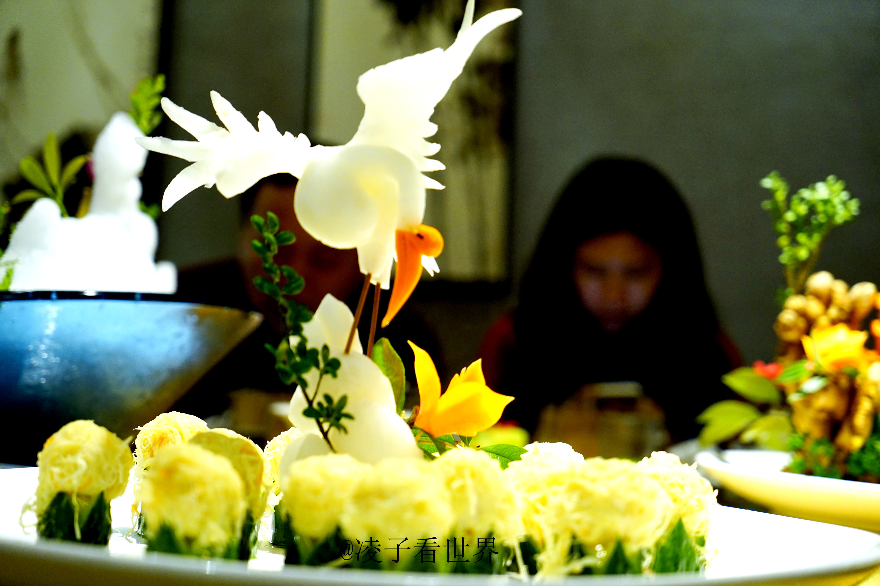 竹香一品锅,穿椒方竹笋,天鹅点绣球,一袋定乾坤,冰封双鲜拼这个是个冷盘,泡椒腌制整棵笋与滑嫩的鸡肉片,吃起来微辣开胃。翠竹碧玉扇,扁尖桂花鱼,玉液菊花盅这刀工了得。和谐太极羹,荷香竹筒饭,圆笼笋肉包。这一顿饭吃的可是大开眼界,不仅养眼,味道也是相当的鲜美,都是很符合如今清淡养生的口味。这么精致的菜肴一定要知道大厨是谁,把大厨请来亮个相吧,人家可是上过中央电视台厨艺大赛的,而且是金牌厨师。能吃到他做的菜也是很荣幸了,点个赞!这一顿竹宴人均一百块,很便宜吧。