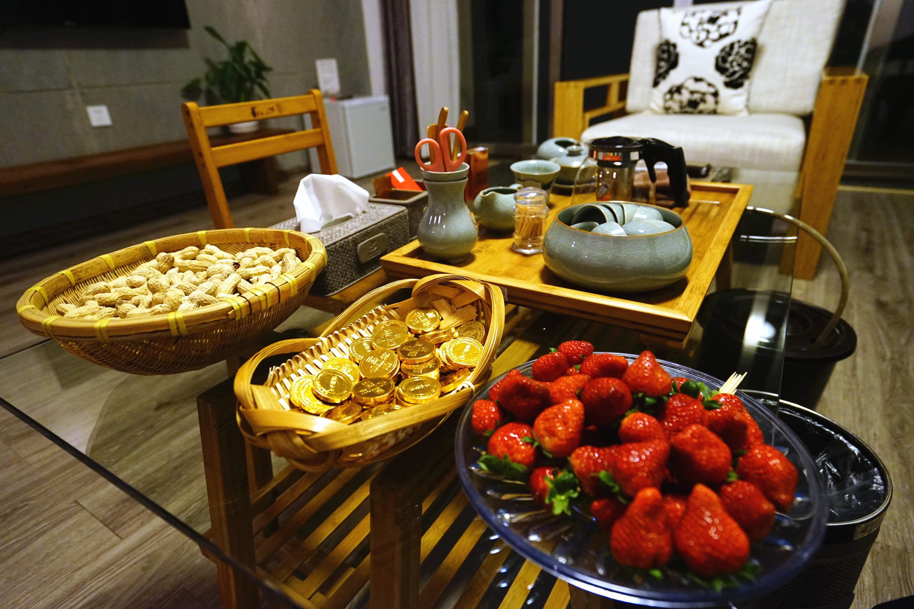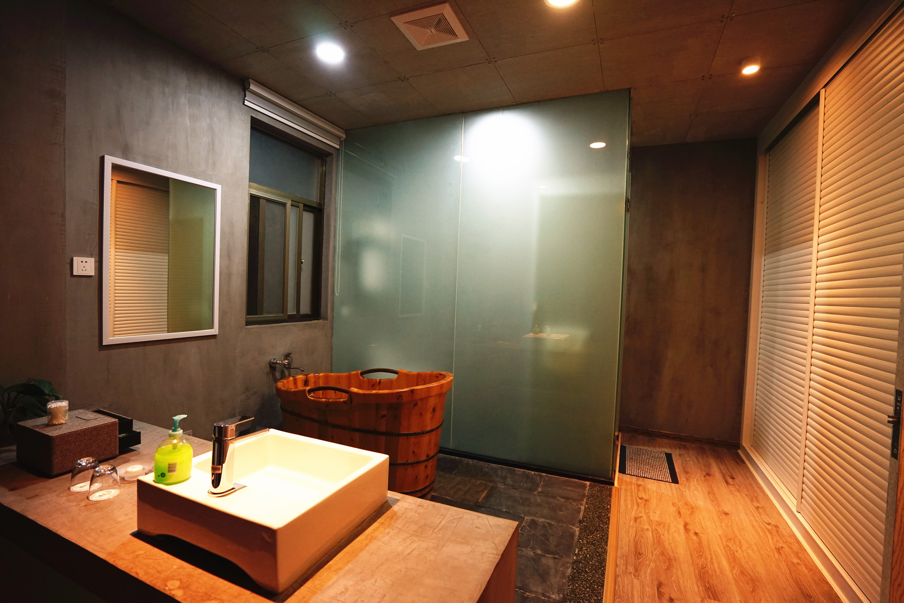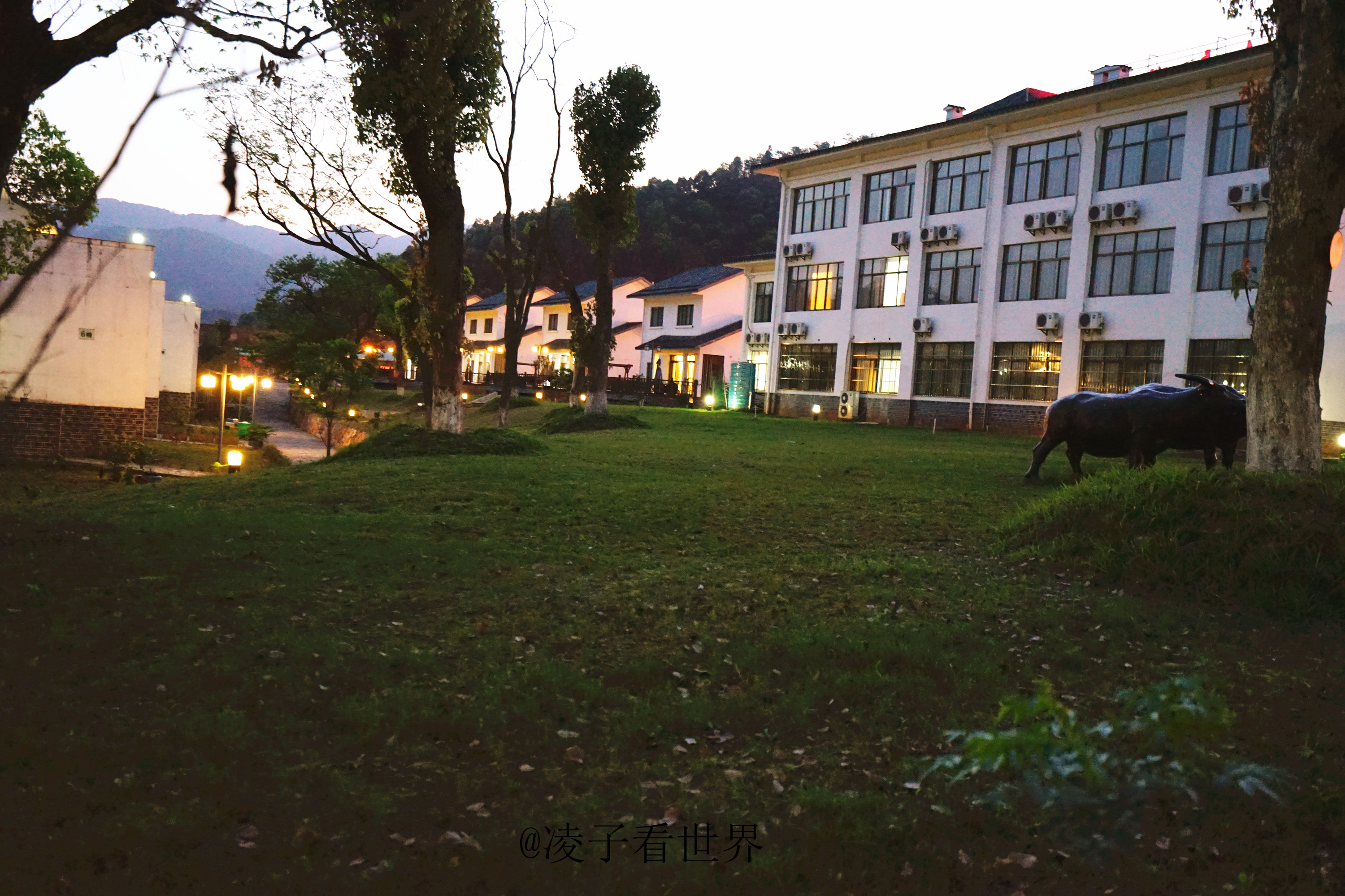 吃完晚饭,回别墅休息喽!乡村里的别墅是啥样子,随我来看看。我们住在一栋四间房的五号,宽敞的客厅,大落地窗外就是九龙溪,一层的客房是大床房,有木制的大浴缸。