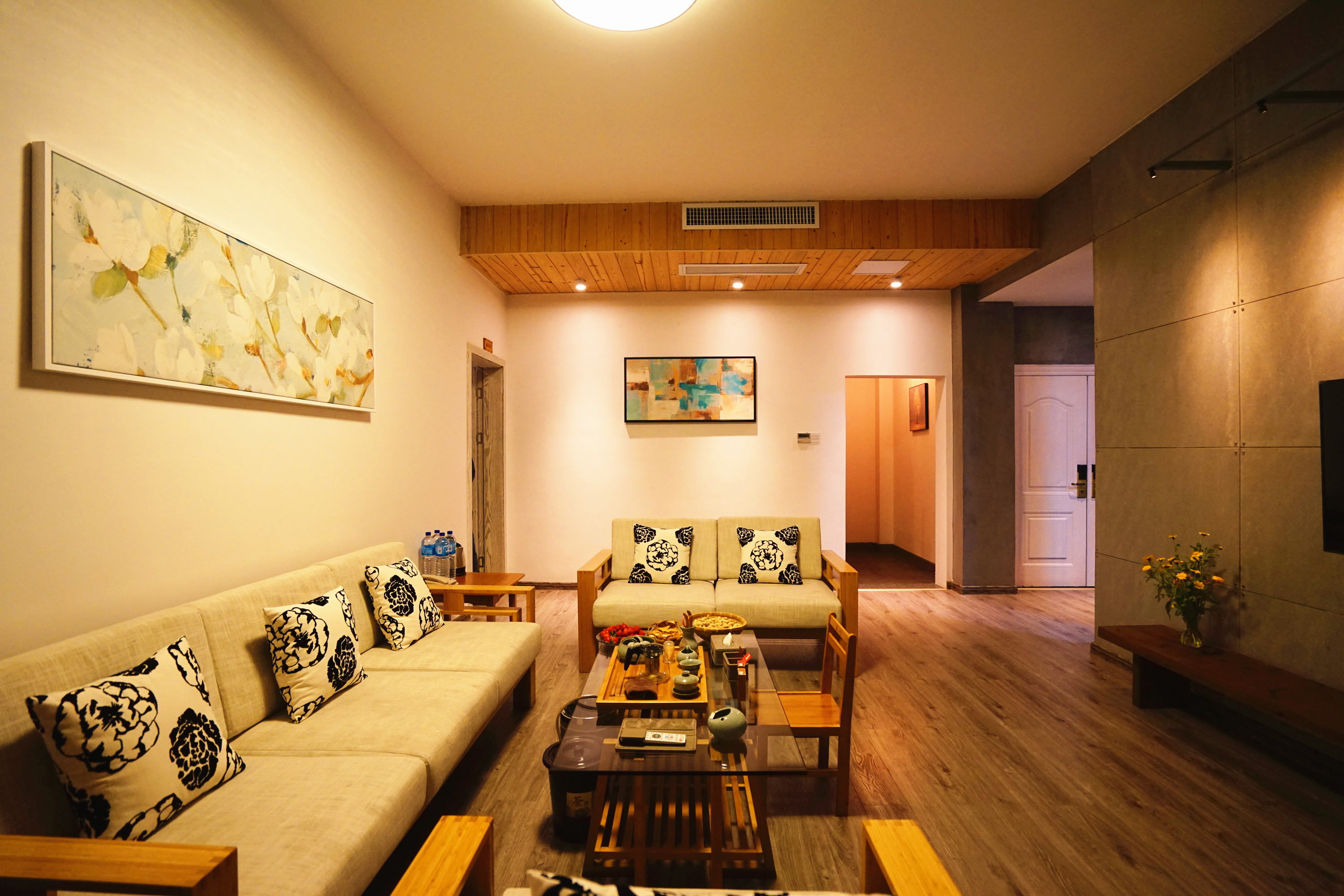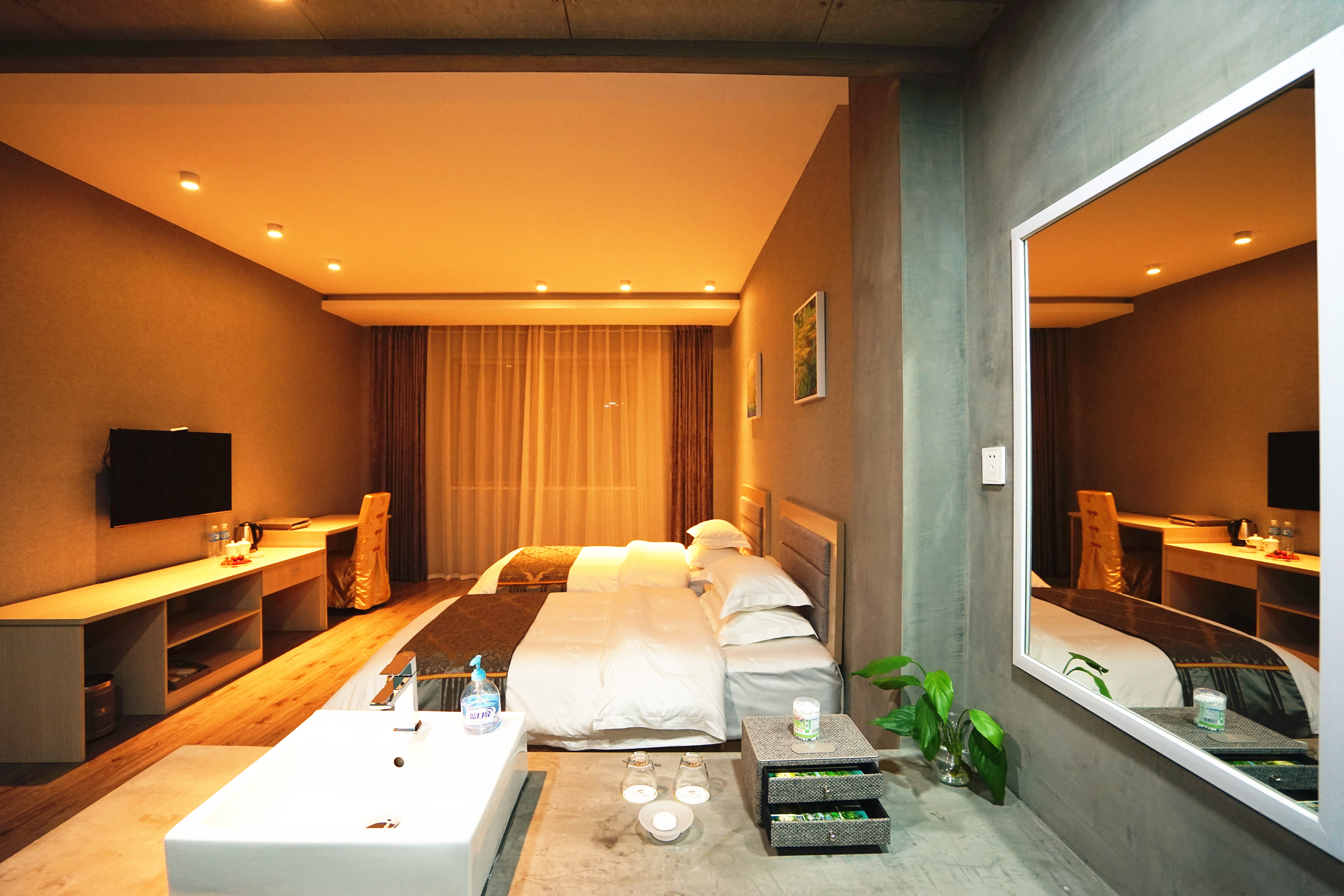 二层有一间大床房,三层中间一个大标准间,开放的浴室与房间连接,房间大而宽敞。左手这边一个标准间,布置都很温馨,右手有一个楼台可以观风景。一栋别墅一晚上一千多,几家人一起住很划算哦!