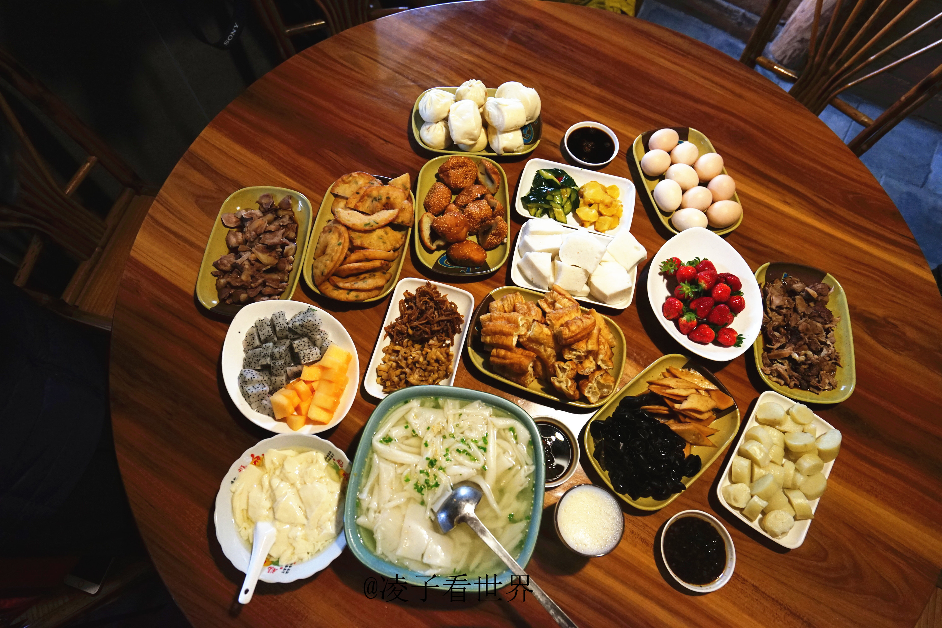 早餐去到家乡裸条坊,吃一吃永安的特色小吃,看这一大桌子多丰盛,尤其是这个裸条,别看是清汤,吃起来滑爽鲜香,不知放了什么调料,让大家吃的赞不绝口。