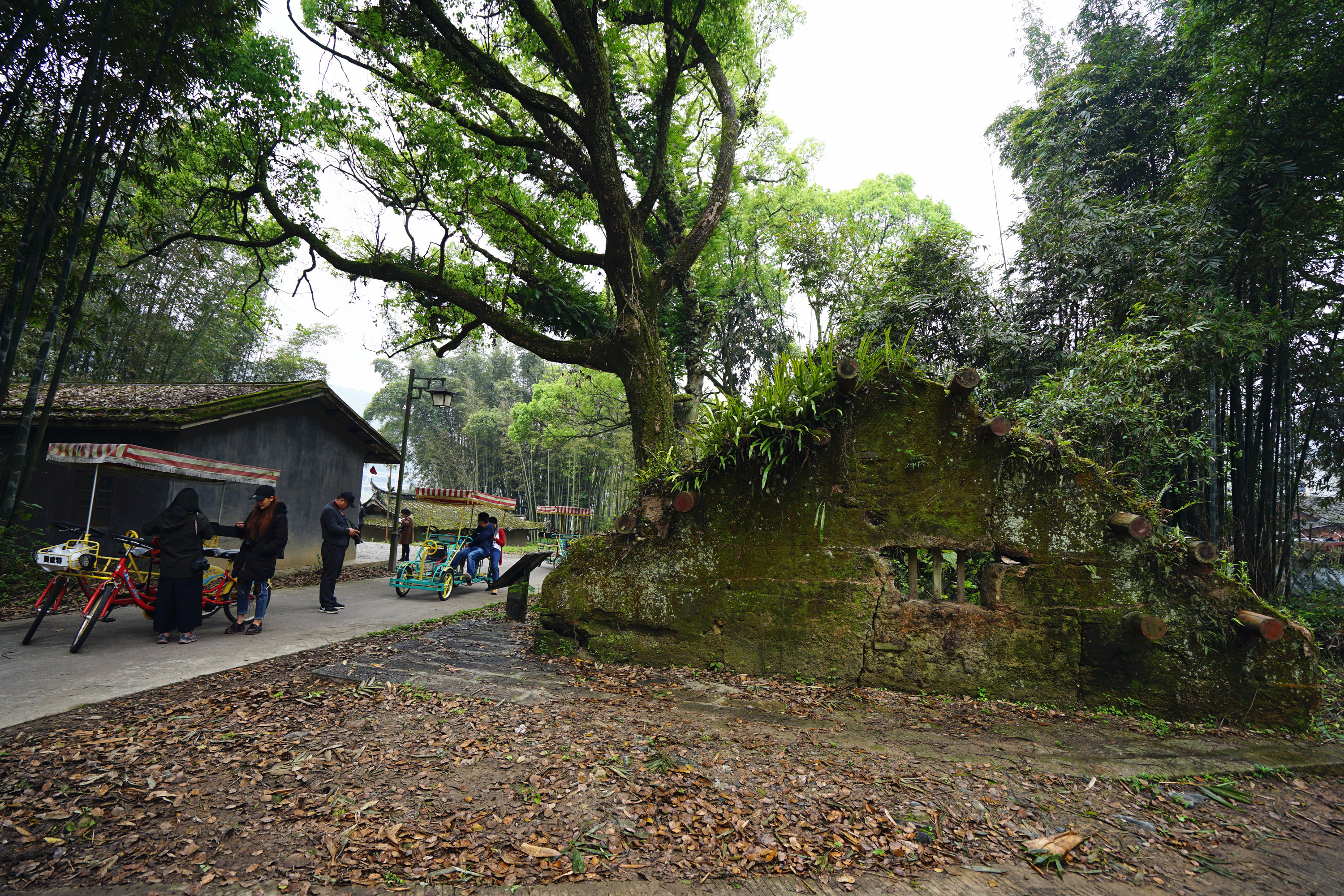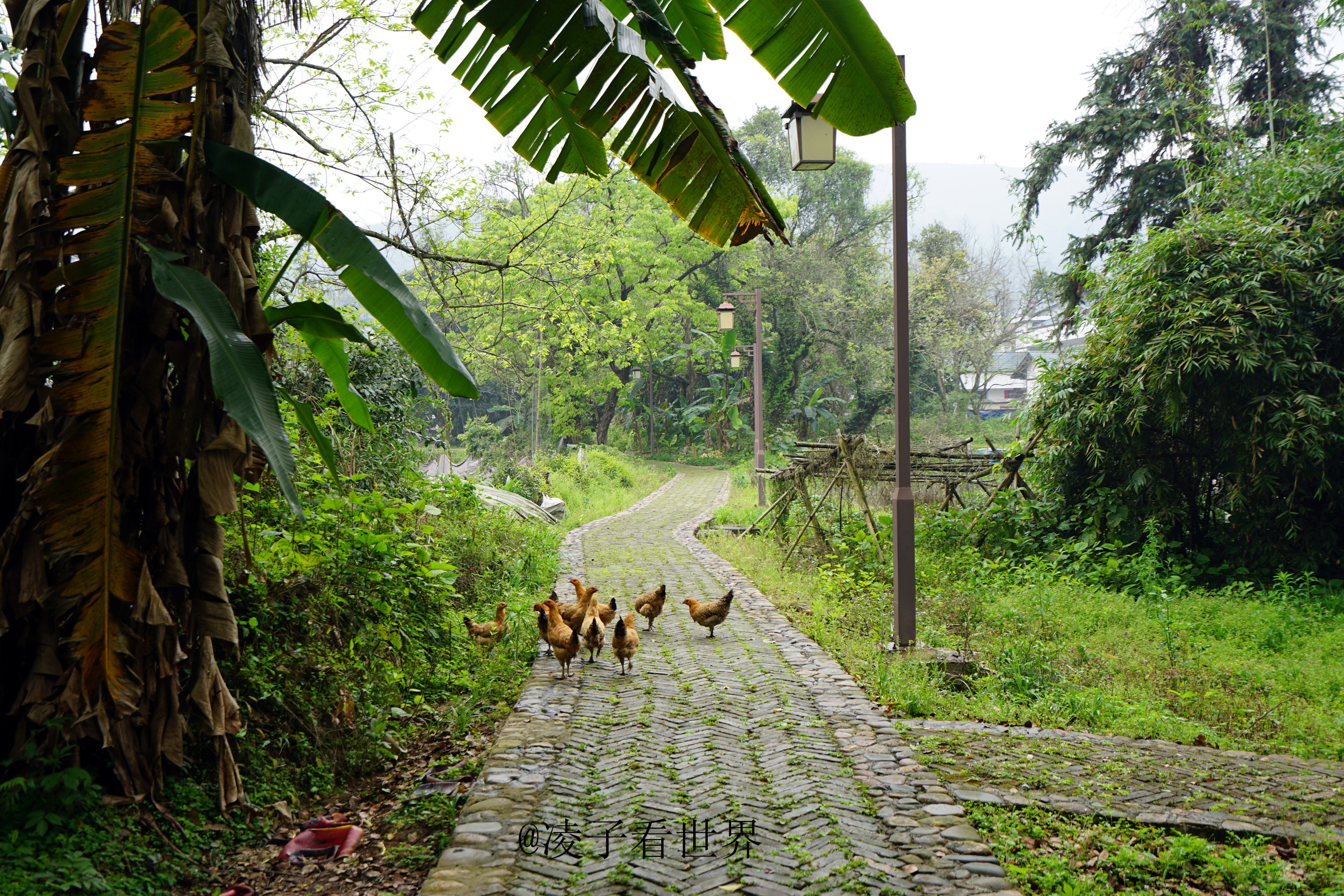 第二天继续骑着自行车游玩霞鹤村,村子里古树参天,河水潺潺,溪边洗衣的妇人,认真的一遍遍淘洗她的衣物,林中成群的鸡鸭在草丛中捉虫子。树上一只只跳跃的小松鼠,丝毫不怕我们的到来。林间小道旁一块破败不堪的土墙引起我们的注意,仔细看去旁边的牌子上写着抗战出版社遗址。