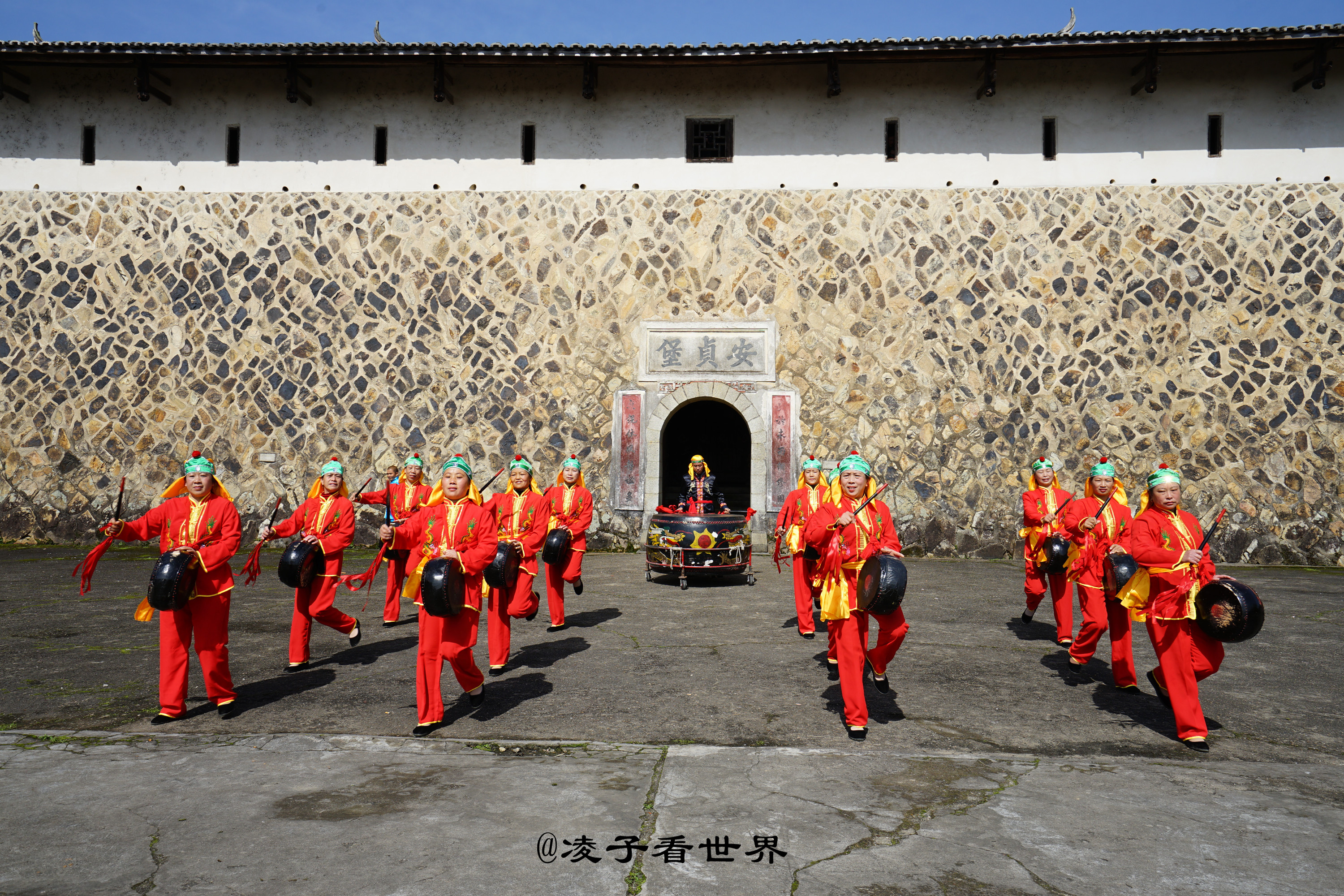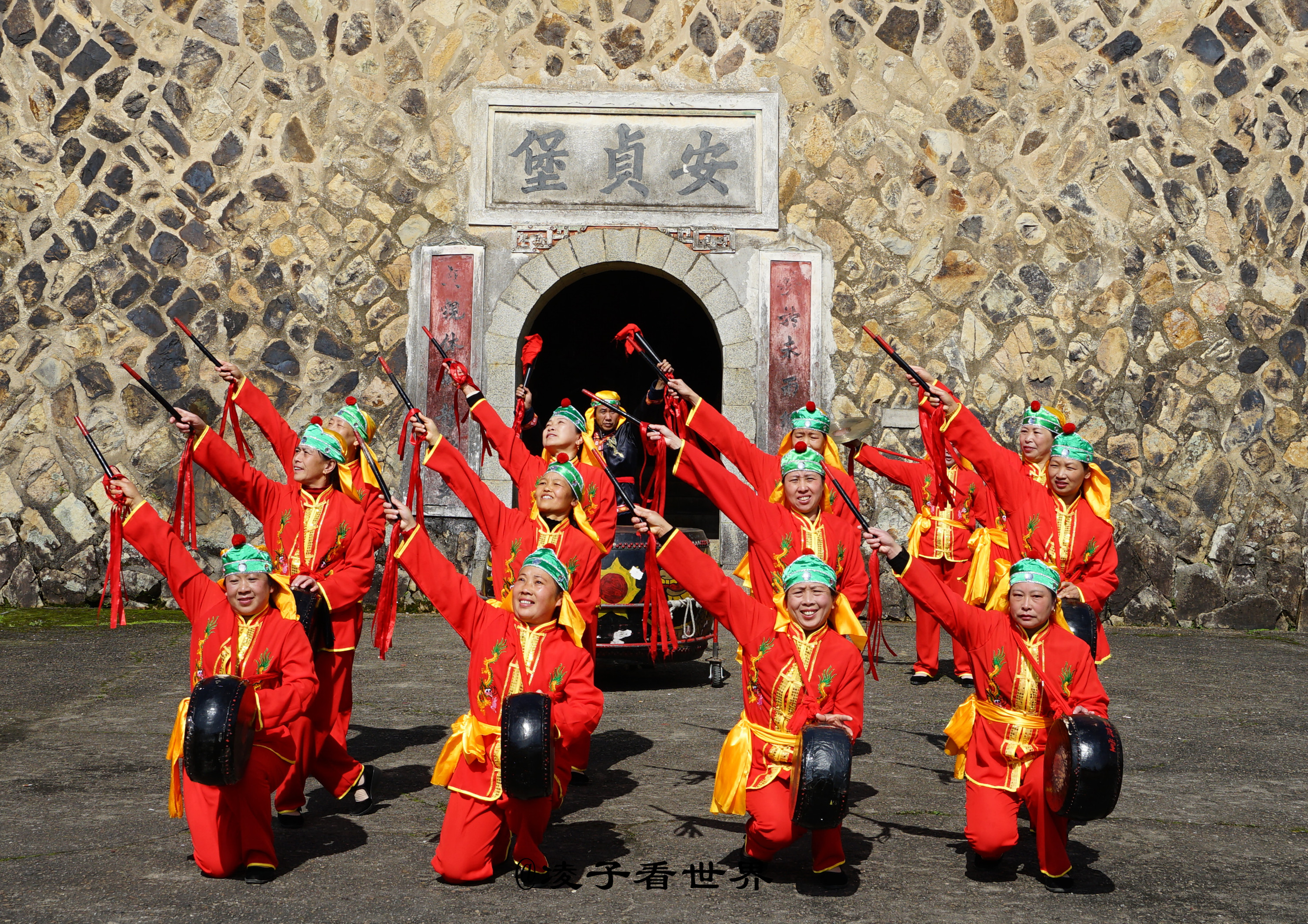 安贞堡外宏大的千人练兵场,锣鼓喧天,异常热闹,如今的繁华与往日的刀枪剑戈如在昨日。安贞笙鼓,这个已被列入福建非物质文化遗产名录的笙鼓,在那个战乱的年代以鼓舞出征的将士,如今已是日常娱乐为主,婚丧嫁娶,节日庆典。