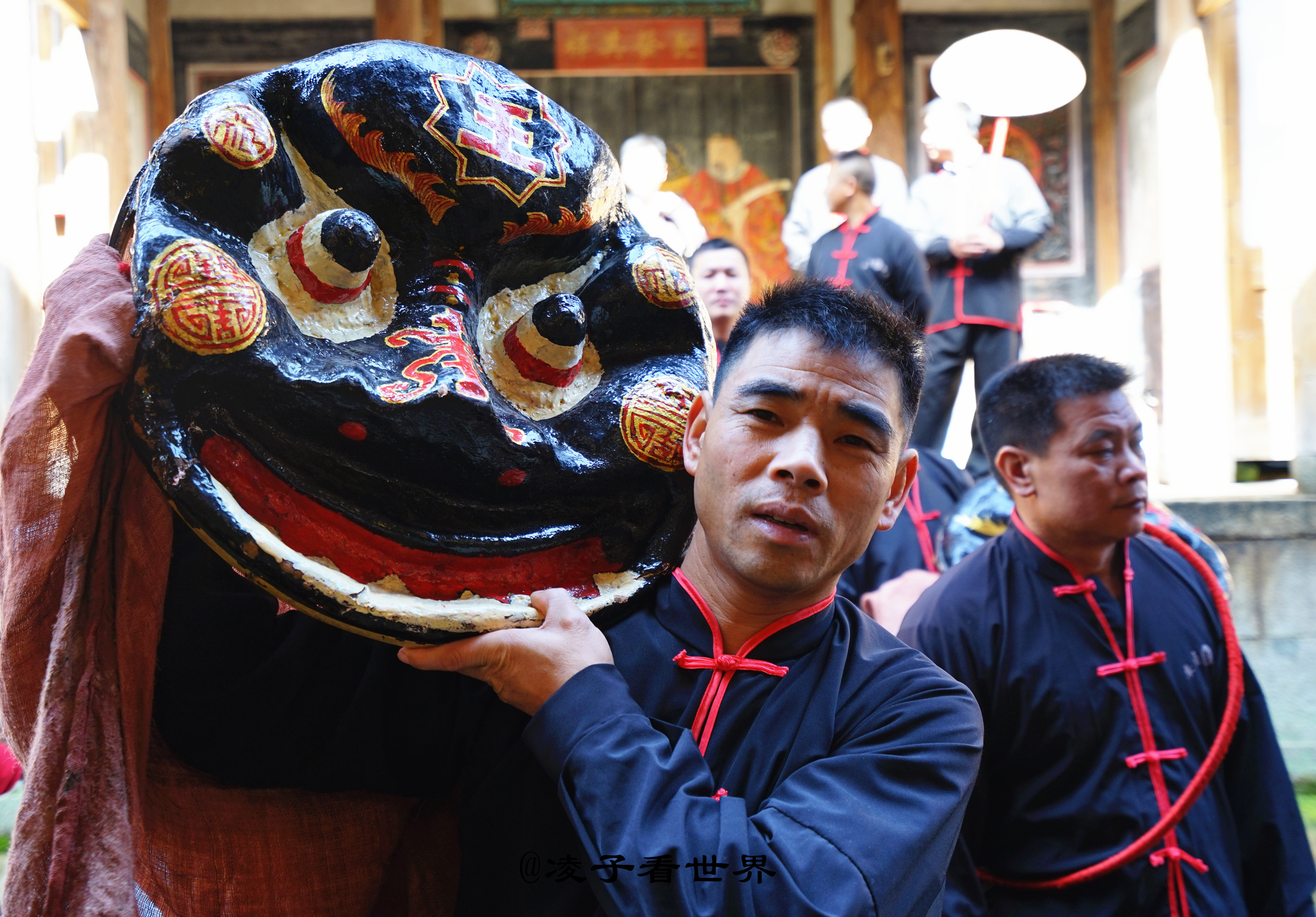 这时院子中一对面目狰狞的黑狮子,不停的在欢快的锣鼓声中,腾空跳跃,时而立起,时而滚地,原来这就是永安有名的打黑狮。打黑狮的原意是镇邪驱傩,这个已有千年的历史,象征吉祥,勇猛,喜庆,现已成为节庆期间的一种民间表演活动。