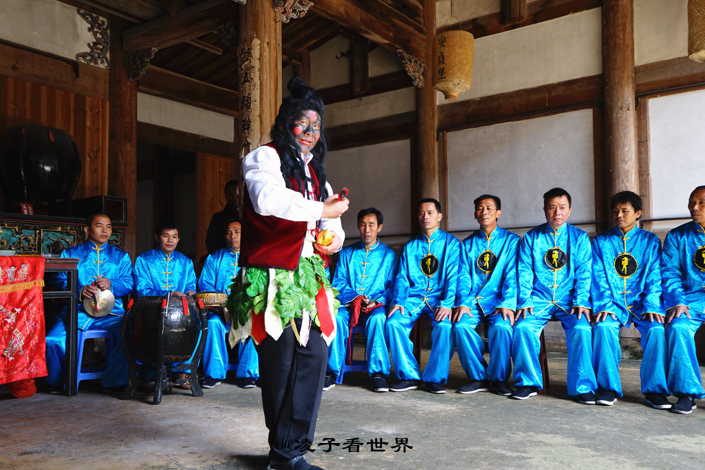 看着正厅堂上高悬的“诰封”二字,以昭告天下这里曾经的荣耀。可见当时这个安贞堡也是得到了官府的重视。只见厅堂上坐着两排穿戴整齐的蓝衣人,中间一个正在挥舞着大刀,上下翻飞,脸上抹得乌漆嘛黑,而两边的人则是不停的低声吟唱。恍惚间以为自己看花了眼,原来是当地的演员在表演安贞杂剧作场戏,至于唱的什么我一句也没听懂,对于我来说只是看个热闹。听说这个戏种已经很少有年轻人来传承,而这些人都是临时组合的,他们都在外打工,很少经常会演出,也就是在逢年过节或者重大节日的时候会表演一下。古老的文化还是需要有人来传承啊!