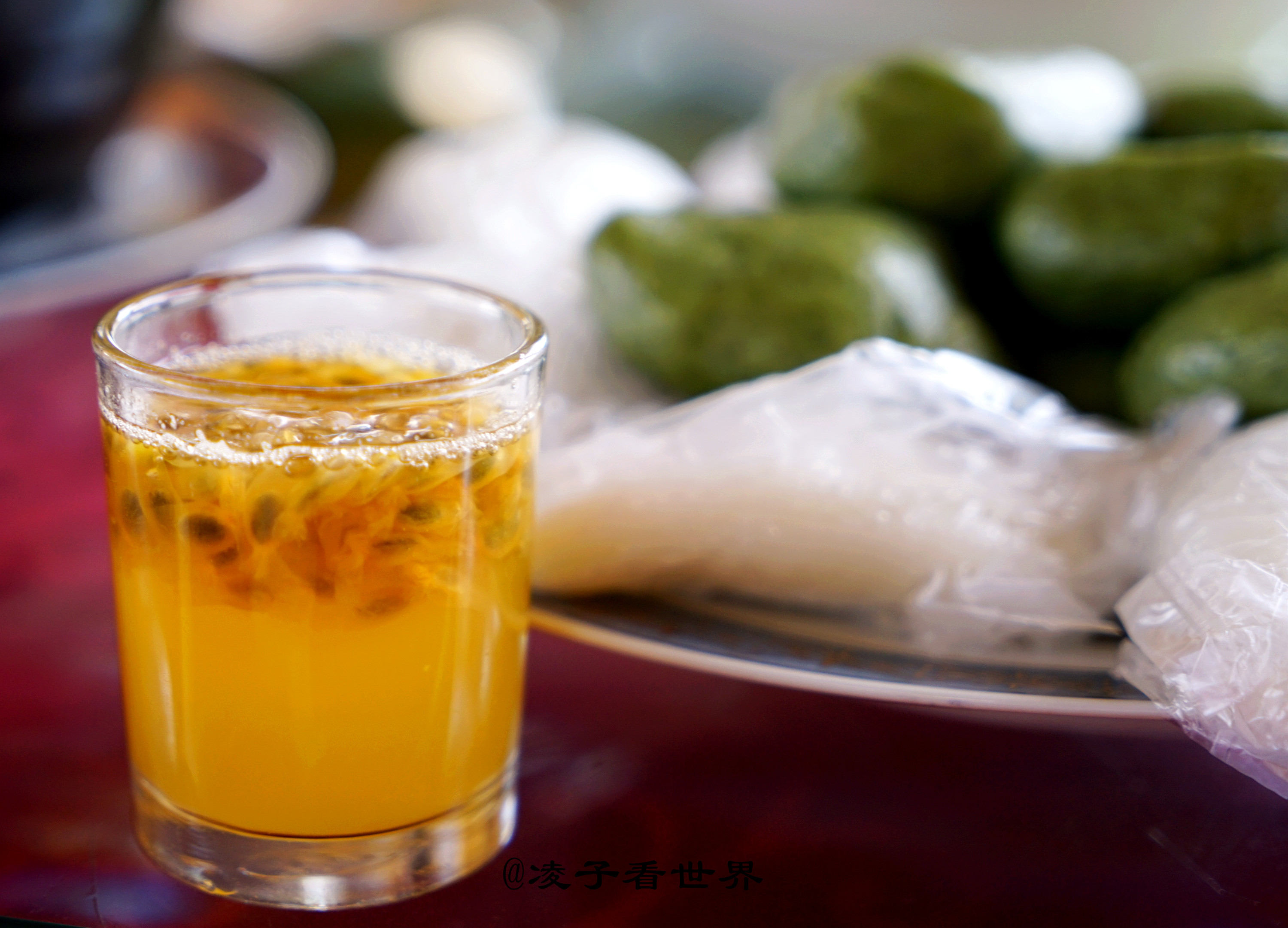 出得古堡,来到田间不远的农家院,听说这里有全牛宴,那我们可得细细品尝一番。别看这牛皮冻外观不咋地,吃起来可是滑爽弹牙,每个人跟前都会有一个蘸料,根据自己口味来沾沾吃就行。这透心凉的百香果鲜榨汁,很受大家的欢迎,芳香四溢口齿留香。