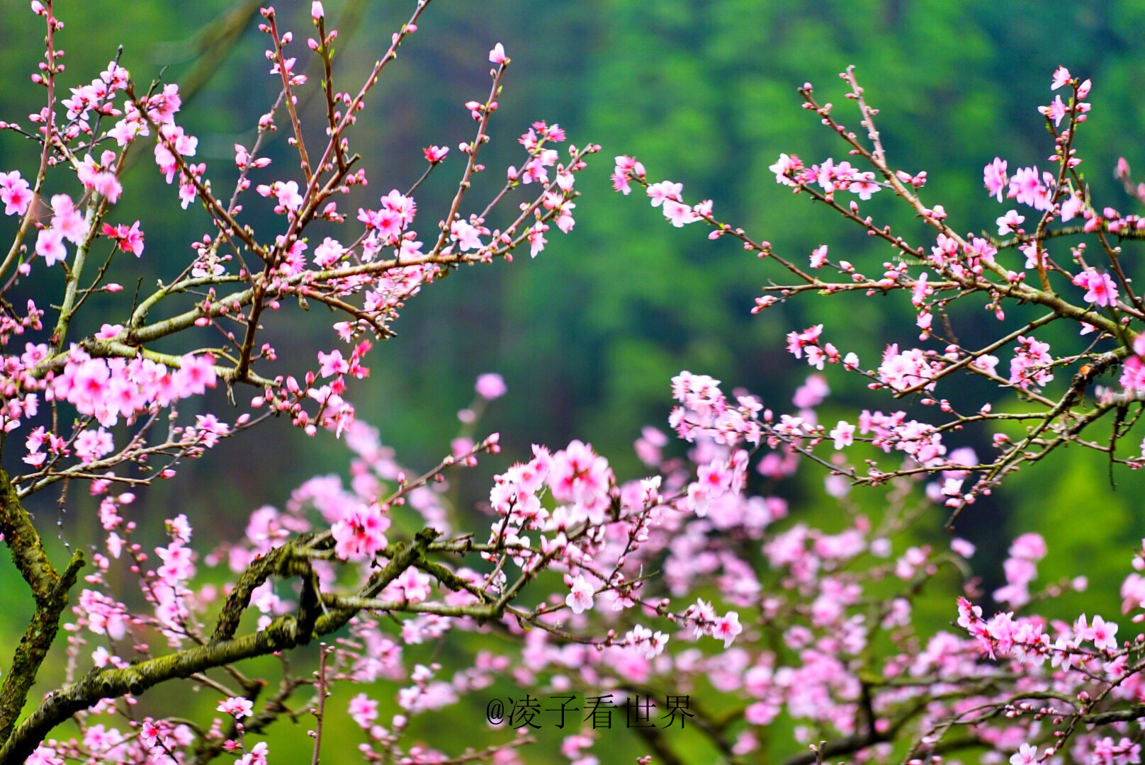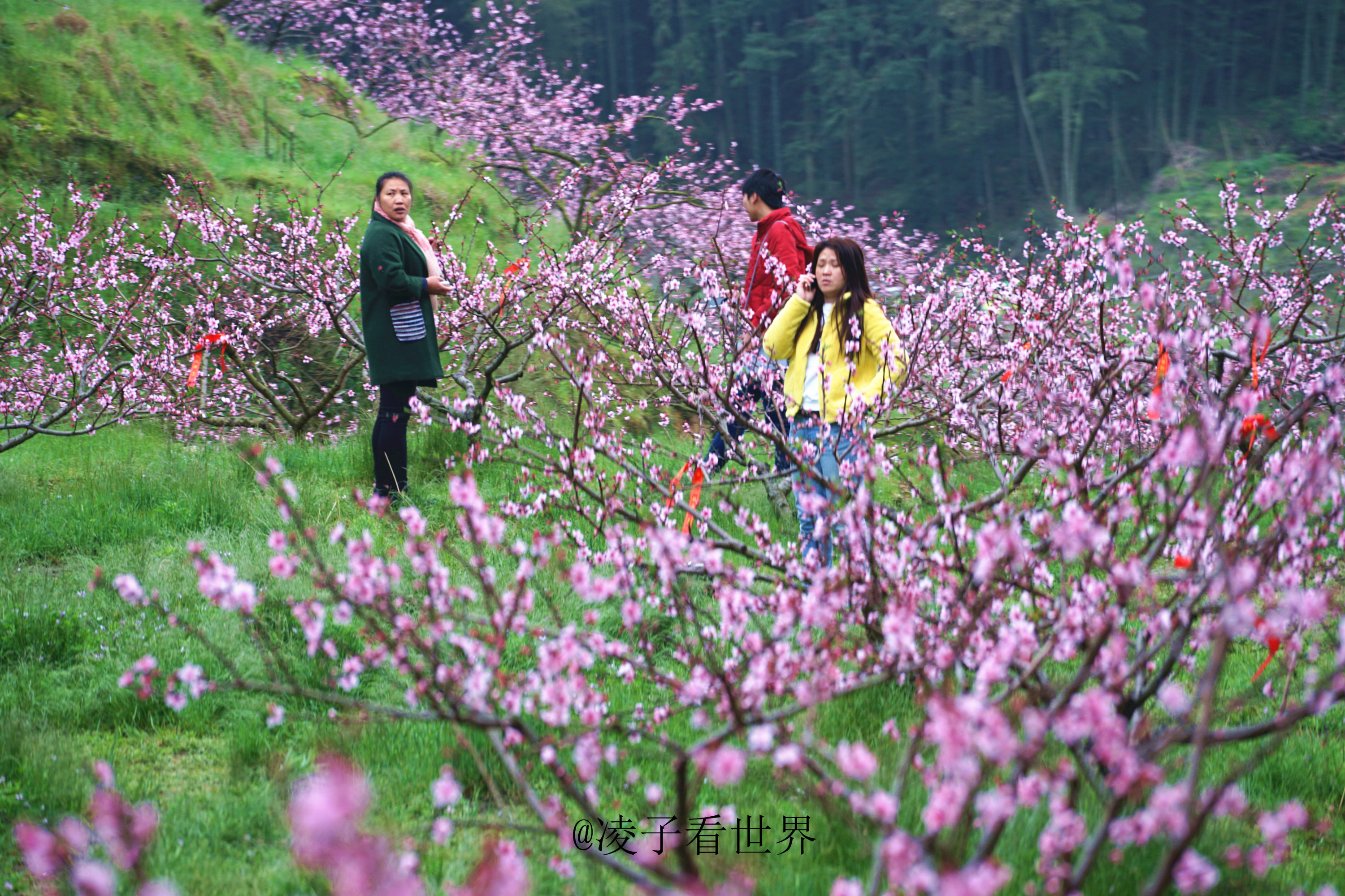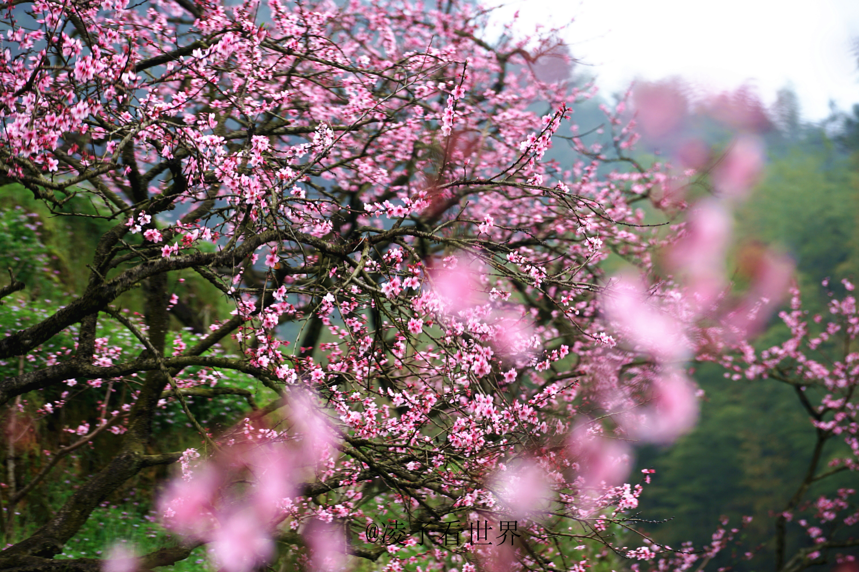 山上桃花层层开,云间烟火有人家。这层层的梯田,一棵棵红艳艳的桃树穿插其中,山后面的翠竹林与这桃花形成鲜明的对比。这就是南方的桃林与北方最大的区别,而且这里的桃花也是很大,桃花中间很红边缘粉红,而北方的则是粉里透着白。