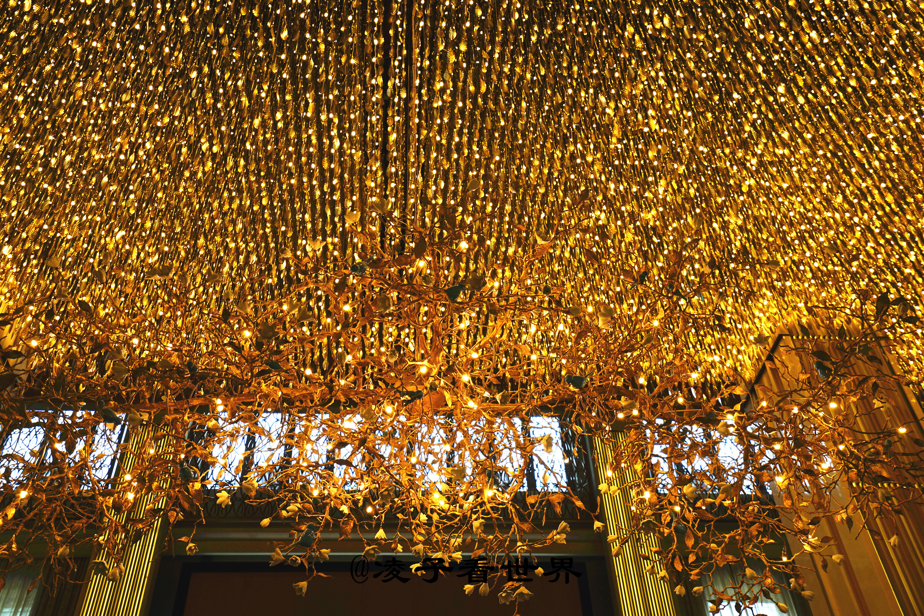 http://si1.go2yd.com/get-image/0CWfl0xxUEC走进酒店大堂放眼望去,目及之处以金黄色为主色调,弥漫着浓郁的地中海风情,瑰丽大堂的落雨琳琅在十六米挑空的高处,一万两千片金箔叶悬挂在风中轻摇碰撞发出清脆空灵的声音,金箔的装饰由内及外无不彰显皇室气派。