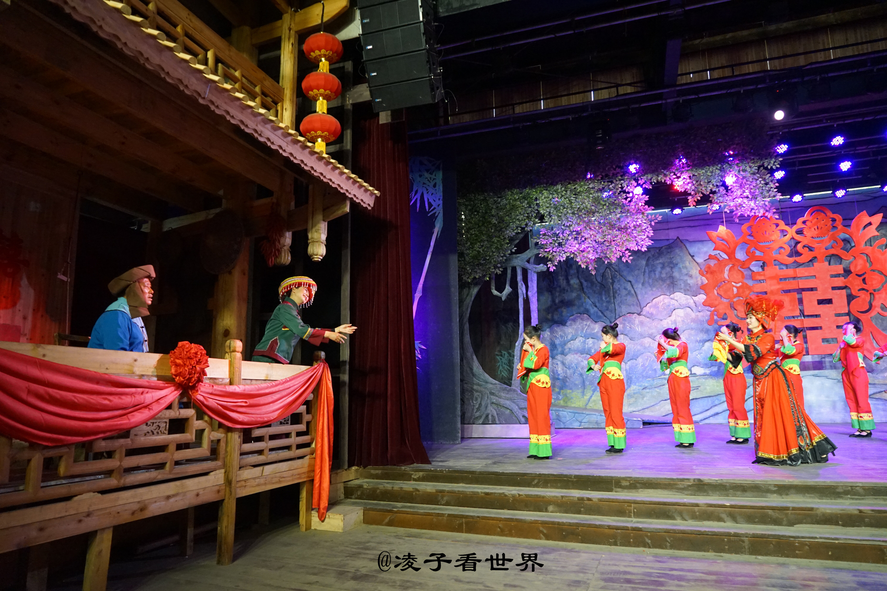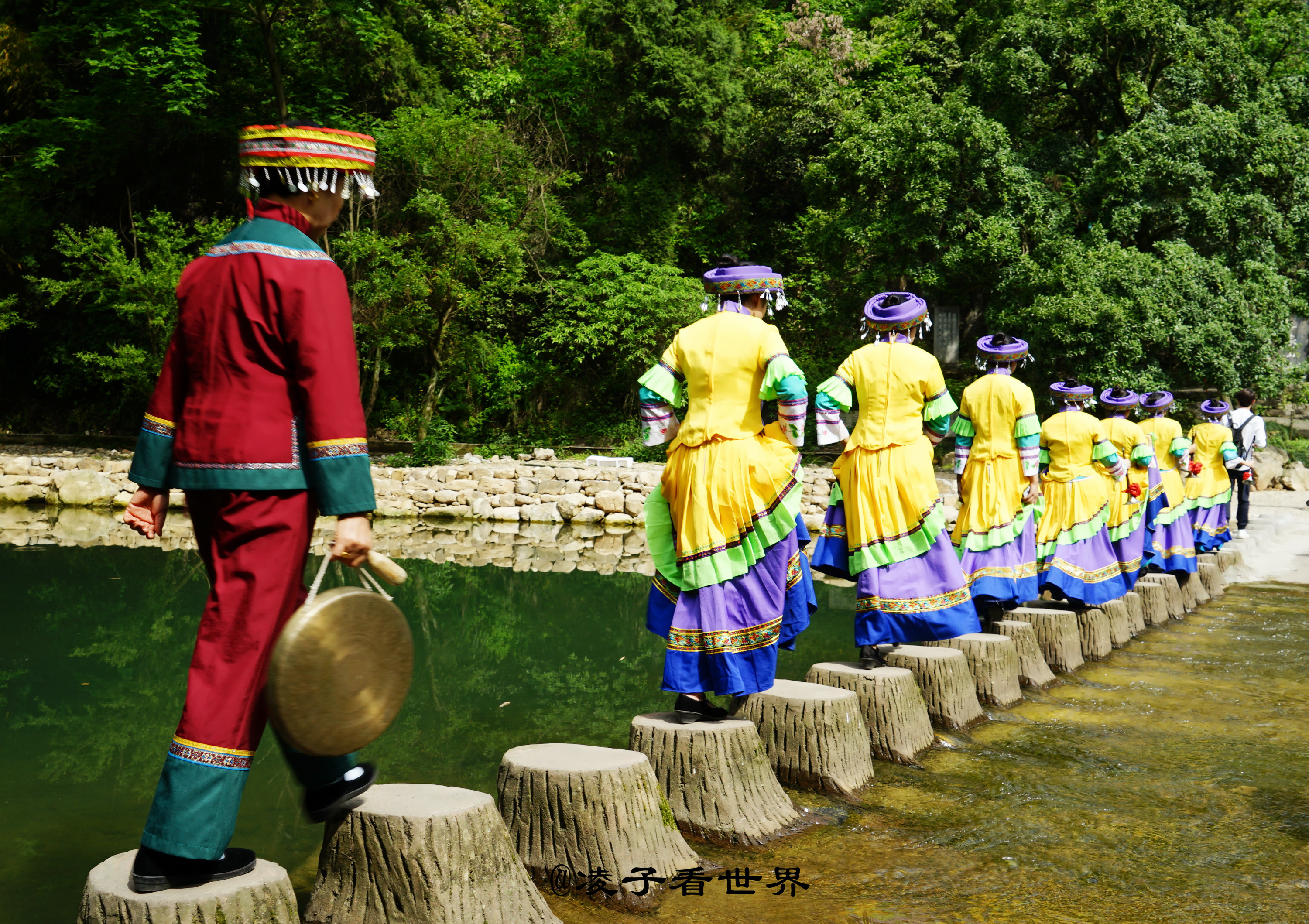 http://si1.go2yd.com/get-image/0CtsexVFNlg离开巴楚故土园,来到土家山寨,这里绿树环绕,山清水秀,远远就看见门口穿着土家族盛装的男男女女列队欢迎我们,这是进寨子的盛大欢迎仪式,敲起锣鼓,唱起土家迎宾歌。幺妹们个个漂亮迷人。迎宾结束我们踩过溪流进到寨子里,土家的吊脚楼就在眼前,走进吊脚楼先去看看土家最具特色的歌舞表演。原汁原味的土家哭嫁表演真实的再现了土家幺妹出家的动人场景。