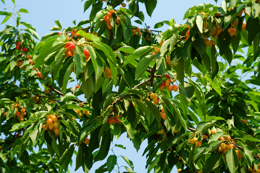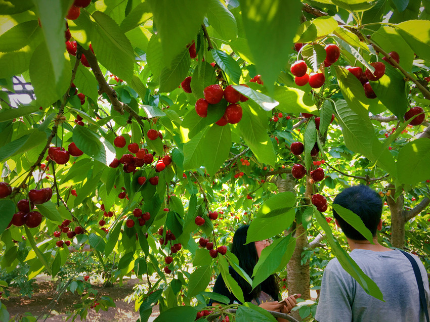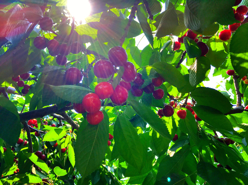 看着孩子们欢快的穿梭于樱桃园中,嬉闹着,采摘着,还不时的比一比谁摘的更大,更多。大人们也是喜上眉梢,乐得合不拢嘴。鲜甜多汁的紫樱桃,黄樱桃,吃起来都是那么的甜,红色的甜中透着一丝丝的酸,恰到好处的酸甜口感让人越吃越想吃,吃着就停不下来。这里的樱桃之所以好吃,是因为采用有机肥喂养树木,原生态种植。
